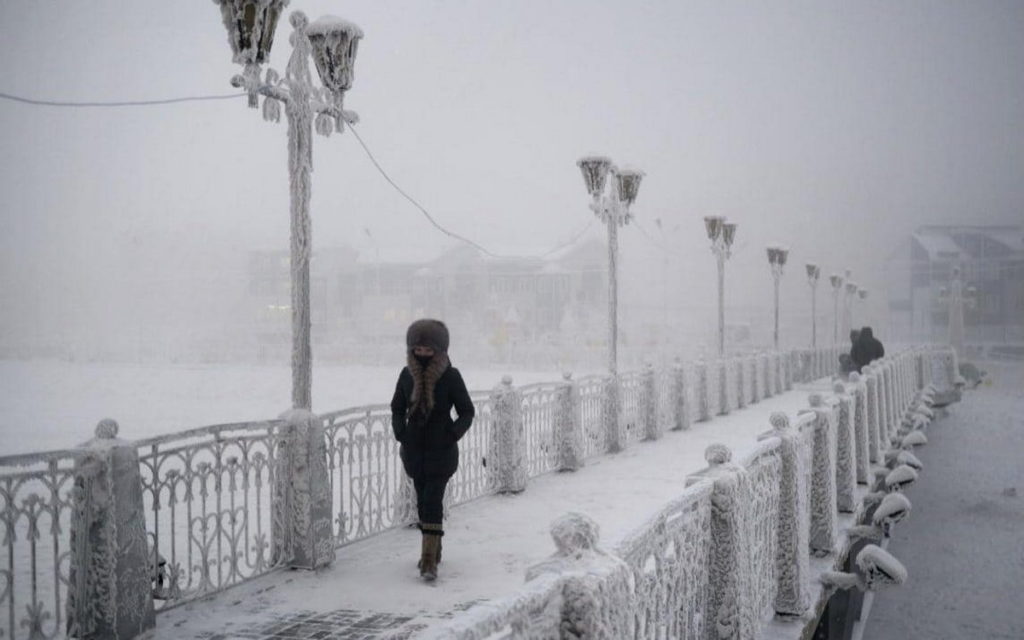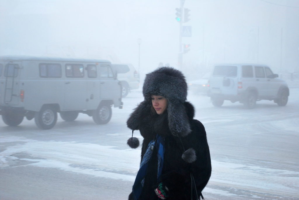 A Jakutszkban az időjárás meglehetősen zord, a januári, februári átlaghőmérséklet (!) -42-43 Celsius fok, de mértek itt már mínusz 67 fokot is, sőt augusztusban plusz 38 fok is előfordult, azaz akár több mint 100 fokos hőingadozás sem elképzelhetetlen egy éven belül. A hely, ahol nem az UV, hanem a hideg miatt nem tanácsos még beöltözve sem 10-15 percnél többet a szabadban tölteni, mert nagyon gyorsan fagyási sérüléseket szenvedhetünk. Lefagyhat a szempillánk, vagy kis sarkítással letörhet a fülünk, a szabadban pisilni pedig inkább meg se próbáljunk. Ha valaki pedig meztelenül menne ki angyalkázni mínusz 50 alatt a hóba, körülbelül 1 percen belül érné a fagyhalál. Eltemeti valakit viszont 5 napos munka, ásóval és szakaszos tűzrakással, mivel az örök fagy birodalmában a föld 100-300 méter mélységig teljesen át van fagyva, emiatt a házak többségét is cölöpökre építik, hogy az épületekben lévő fűtés, vagy a rövid nyári meleg miatt felengedő föld miatt, nehogy megsüllyedjen a szerkezet.