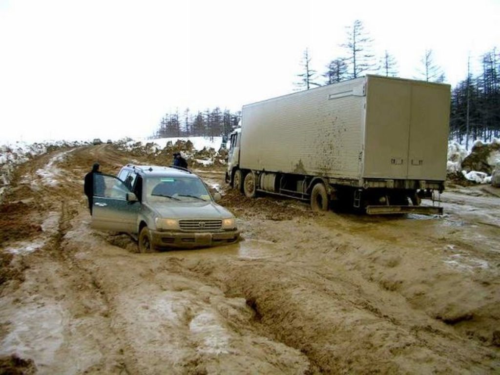 A másik Magadan-ba vezető út, ha lehet még keményebb. A 2025 km hosszú föld és murva út elég sok patakon és folyón vezet át, persze híd nélkül. Télen nagyjából esélytelen. Ha leállítjuk a motort, akkor 90% valószínűségű a fagyhalál (mert újraindulni nem fog).