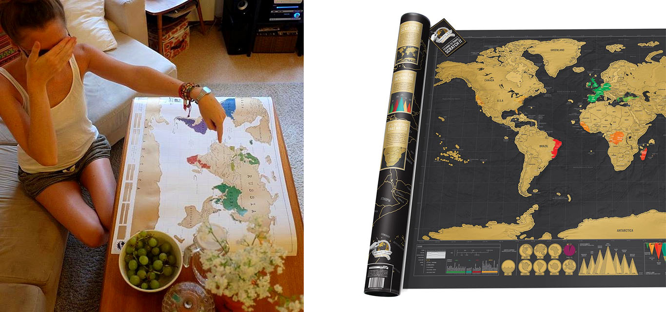 Mi a kaparós térkép alapötlete, hogyan működik? A dekoratív kartonhengerben (vagy eleve keretezve) érkező világtérképet kiterítve arany réteg fedi, mely egy radír vagy pénzérme segítségével lekaparható, csakúgy mint egy kaparós sorsjegy esetében. Lekaparva a különböző földrészek országai különböző színekben tűnnek fel. Ha véletlenül lekaparunk egy olyan országot, ahol még nem jártunk, akkor az olyan, mint az étel, amit megfogtunk: muszáj lesz megenni vagyis meglátogatni, következő nyaralásra betervezni. Ha sok utazást és velejáró kapargatást követően már elég mutatós és meggyőző, akkor ideje megadni neki a riszpektet: vigyük el képkeretezőhöz és akasszuk egy jól látható helyre a nappaliba. Az A1-es méretek egyébként az idei évtől kezdve már keretezetten is megvásárolhatóak.