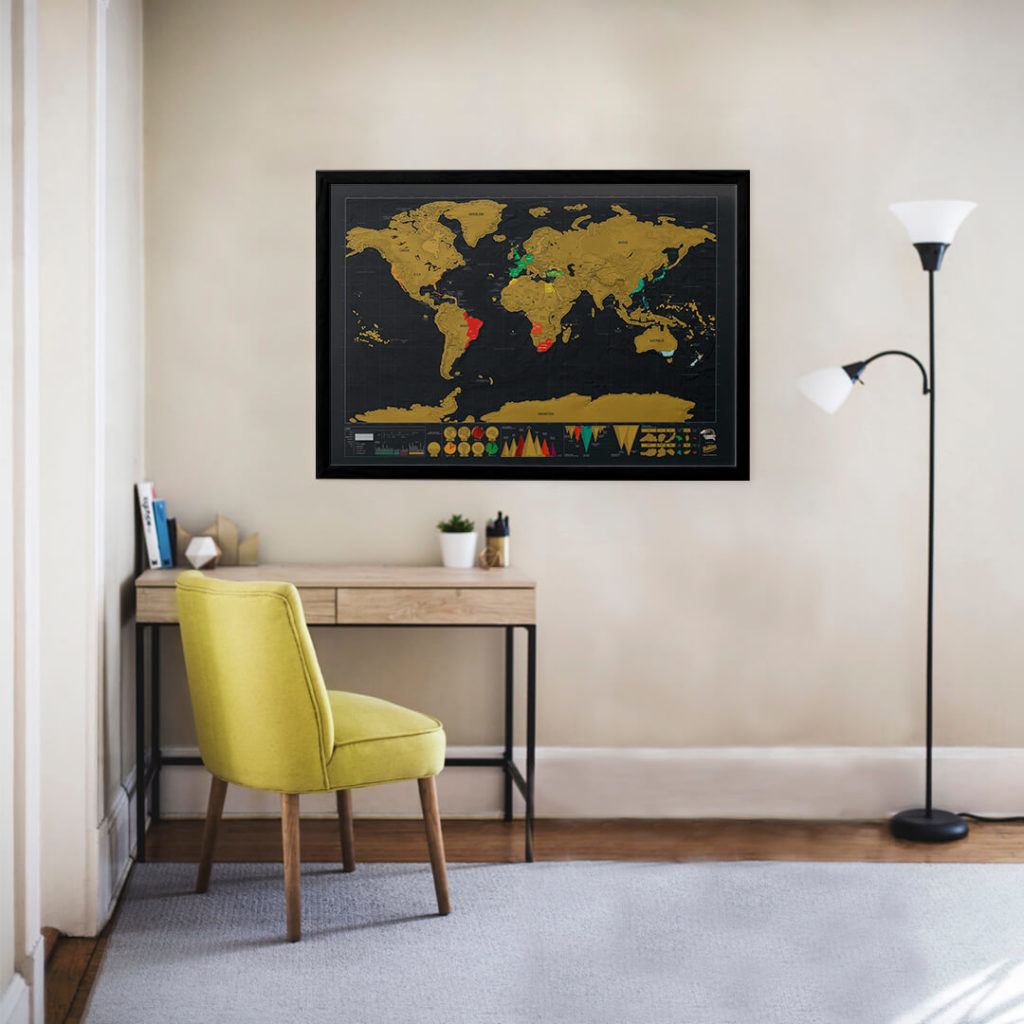 Deluxe verzió: fekete alapon arany kontinensek, lekaparást követően színesben előbukkanó országok. A térkép alján pár extrát is tartalmaz, mint a hét legmagasabb meghódításra váró hegycsúcsot, a legmélyebb óceánokat és a legmélyebben fekvő alföldeket. Három méretben elérhető (A3-A1-A0), a közepes A1 méret gyárilag keretezett változatban is kapható.