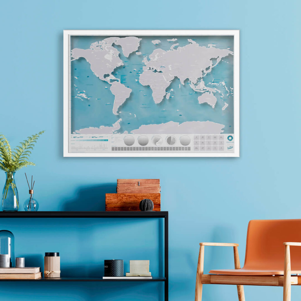 Ha lehet inkább repülő helyett hajóval utazol? Vagy egyszerűen egy kék, áttetsző, ezüstös lekaparható világtérkép jobban mutatna a megajándékozott otthonában? Hasonlóan a többi térképhez a már meglátogatott lekapart országok színesben bukkannak elő az ezüstfólia mögül. A1-es méret. Óceánok kiadás