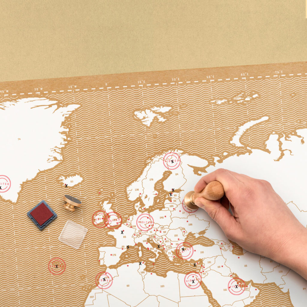 Most már nem csak az útlevelünkben gyűjthetjük az országok pecsétjeit, hanem mi magunk is lepecsételhetjük a meglátogatott országokat. A csinos és részletes világtérkép mellett a csomag 2 db pecsétet és 2 db bélyegzőpárnát tartalmaz. Pecsétek: fekete [X] bakancslista => szeretném megnézni, piros [VISITED] => megvolt, kipipálva. Klasszikus fa bélyegzők/pecsétek. Réz fólia vintage-look óceánok, fehér földrészek, országok. Figyelem ez a térkép nem kaparós, ez bélyegzős! Útlevél bélyegzős térkép