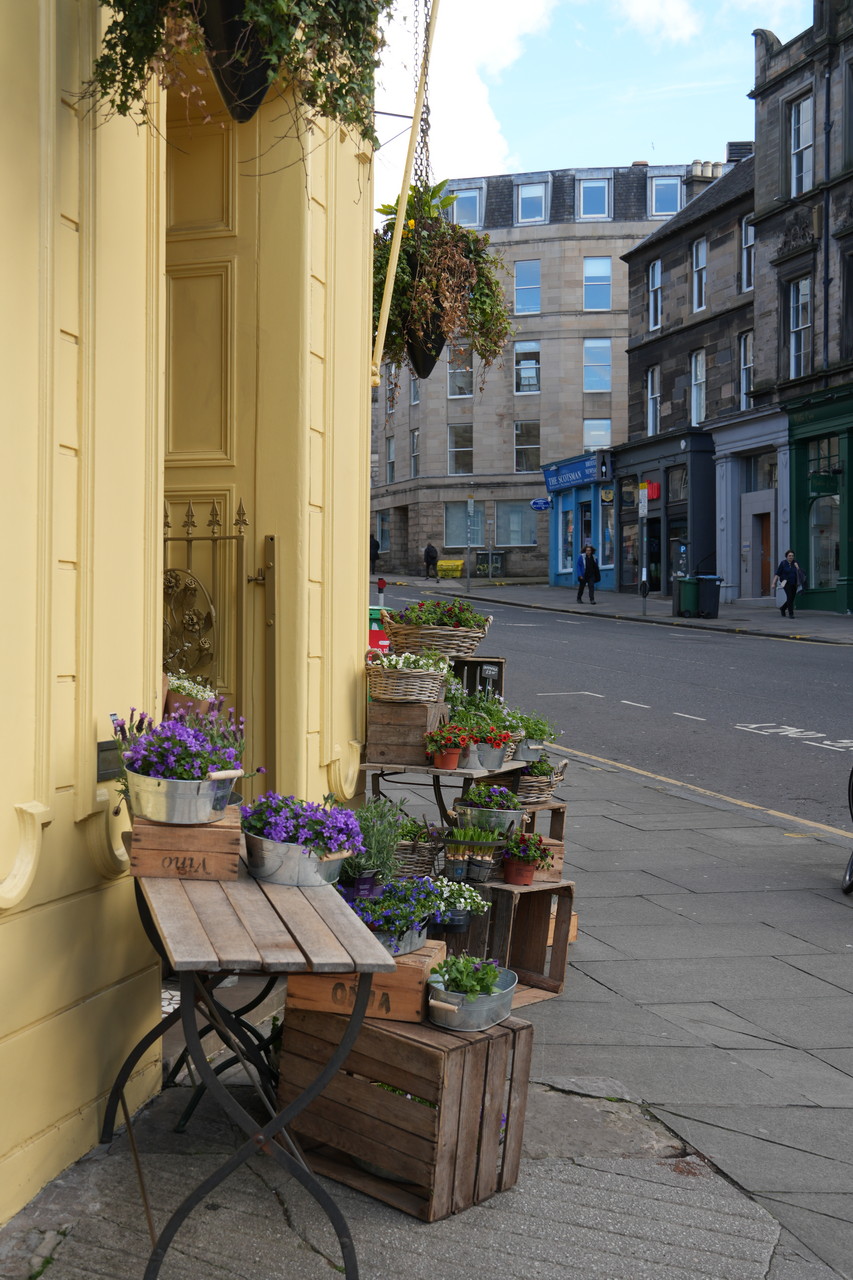 Royal Mile-ról lefordulva a megszokott szürke homokkő látványa helyett Edinburgh legszínesebb utcája a Victoria Street fogadott. Az utca meredek íve és az egymás felett elhelyezkedő szintek látványos építészeti megoldást nyújtanak: az alsó sor üzletei felett egy gyalogos terasz fut végig. A szűk, macskaköves utca éles ívben kanyarodik lefelé a Grassmarket irányába, az épületek pedig egymás hegyén-hátán sorakoznak: alul élénk kékre, rózsaszínre, napsárgára és mélyvörösre festett üzletportálok, felettük pedig a sötétebb, monumentálisabb lakóházak magasodnak.