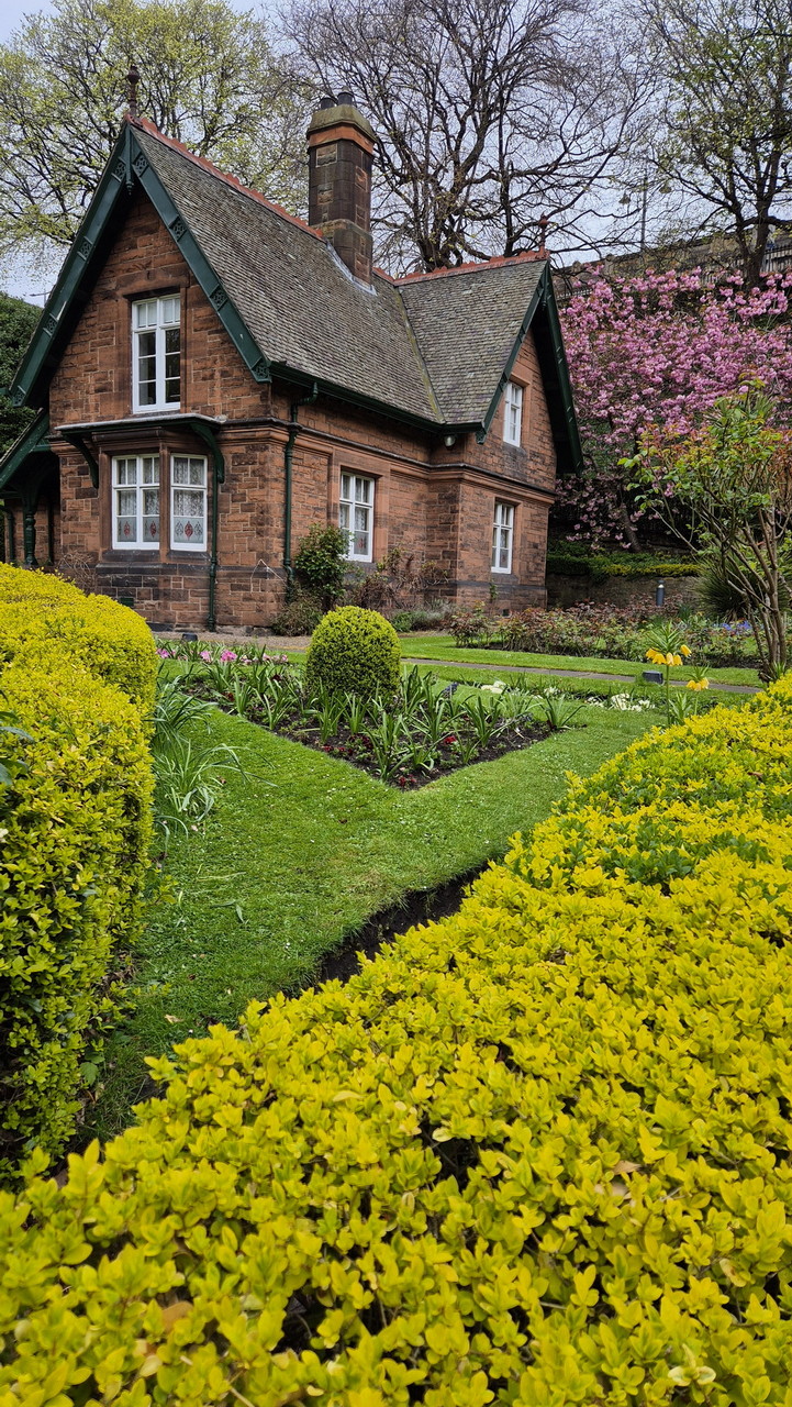 A napot levezetve leereszkedtem a Princes Street Gardens-be. Kevesen tudják, de ez a gyönyörű park egykor a Nor Loch nevű, bűzös és fertőzött tó helyén terült el, ami a város természetes védvonalaként (és szennyvízcsatornájaként) szolgált. Ma viszont egy virágzó oázis. Elhaladtam a monumentális, 61 méter magas gótikus Scott Monument mellett, és megálltam a Gardener’s Cottage-nél (kertészlak), ami a pompás virágágyások és tulipánok között úgy fest, mint egy mesebeli kunyhó.
