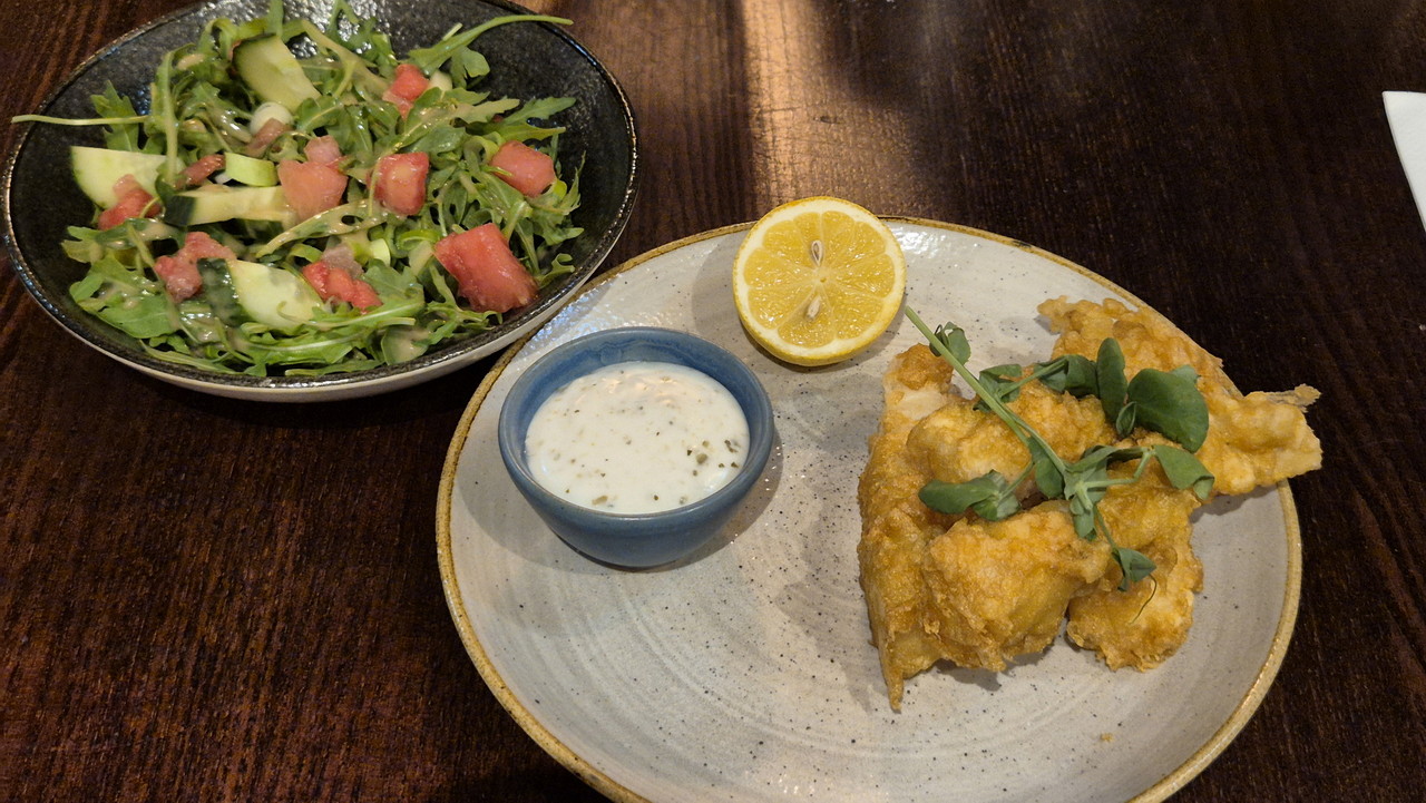 Közben beesteledett, így a következő emeletes busszal elindultam a Murryfield közelében lévő szállásom felé, de előtte ma este is a The Hampton-nál szálltam le vacsorára. A tegnapi Steak Pie után most egy másik angol/skót klasszikust a Fish&Chipset teszteltem.