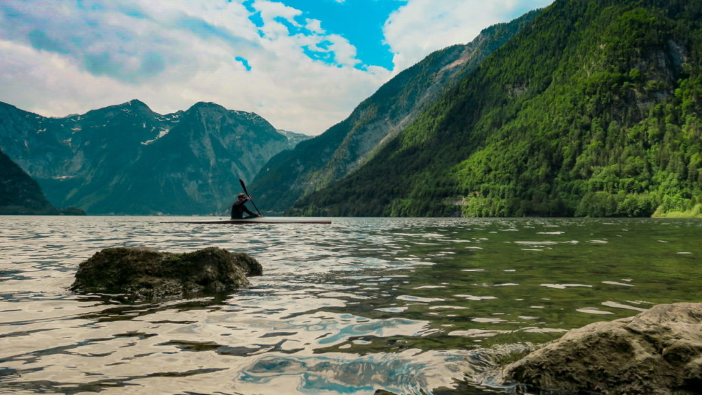 Még csak május, a 125 méter mély, az olvadó gleccserek vize által táplált tó vízhőmérséklete elég szigorú, de vannak már kajakosok, SUP-osok és egy bátor fürdőző is. Obersee következik, egy két utcából, pár házból álló kis falu, de a vonat itt is megáll és hajó/komp állomása is van.