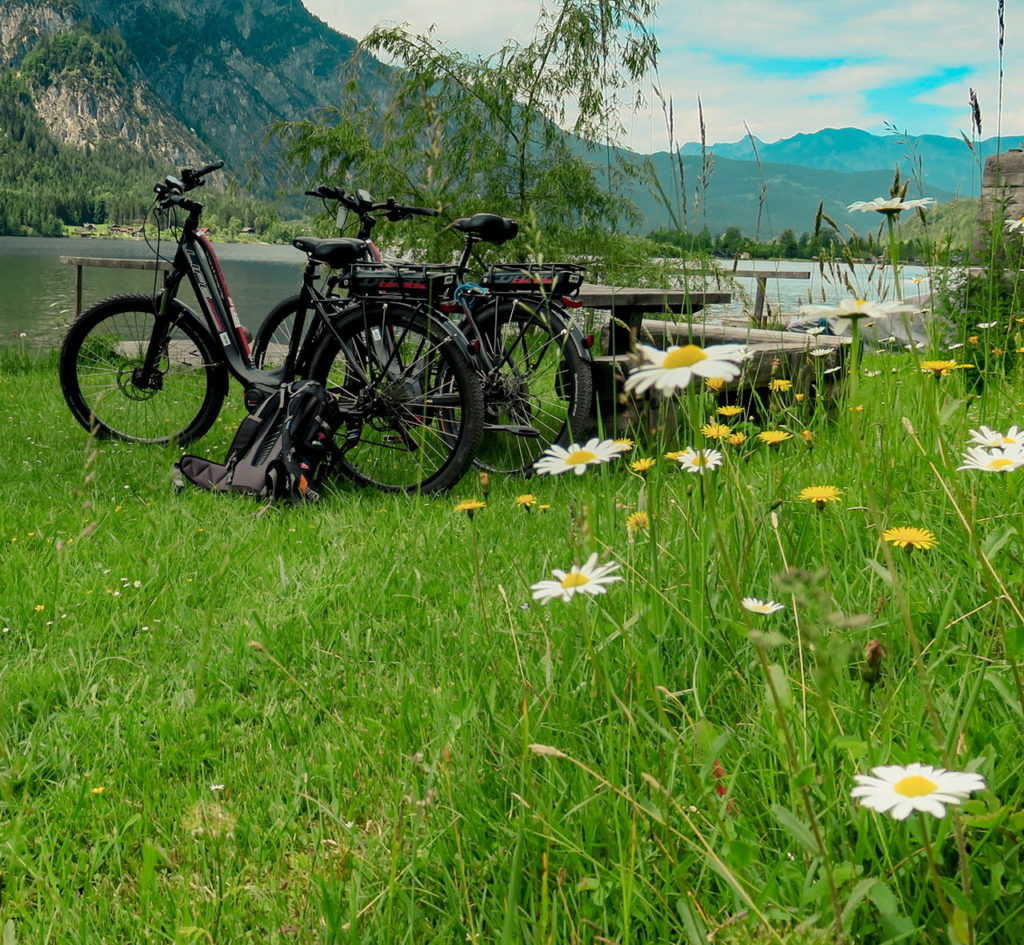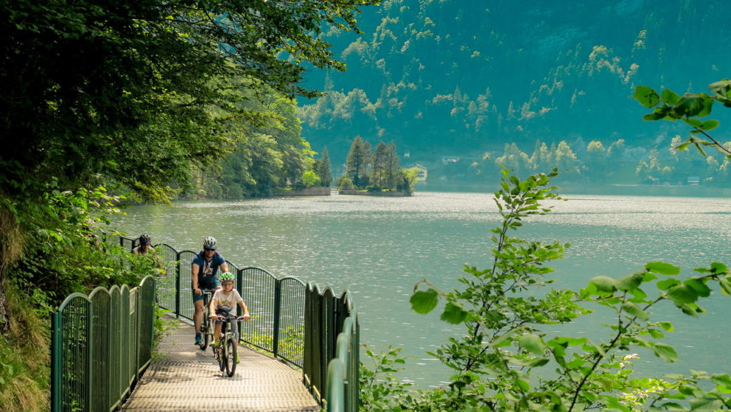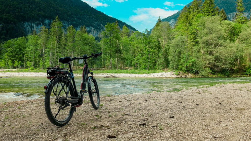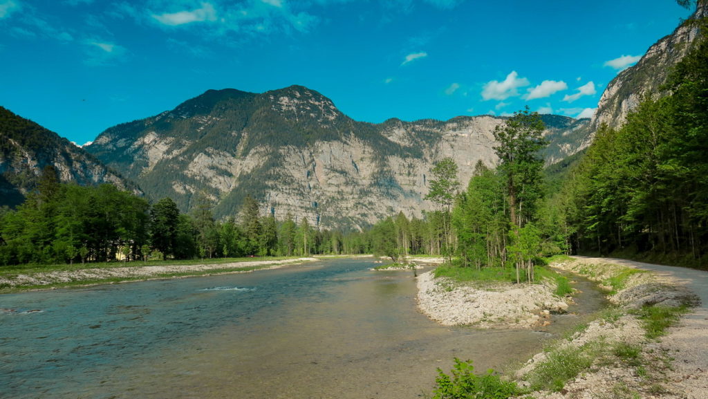 Ebéd, kávé a szálláson, aztán délután egy kicsit keményebb terepen is megnézzük, mit tudnak a Corratec Life CX 10S elektromos biciklik. Obertraun településén keresztül, a Traun patak melletti utat követve a hegyek felé vesszük az irányt. Itt Obertraunban egyébként nemrég adtak át egy 4 km-es épített cross country / MTB bringás gyakorló pályát. A BSFZ sportközpontban található (napi jegy 12 euró). Pontos cím, nyitvatartás: Bike Arena. Sajnos későn fedeztük fel, így inkább tekerünk tovább.