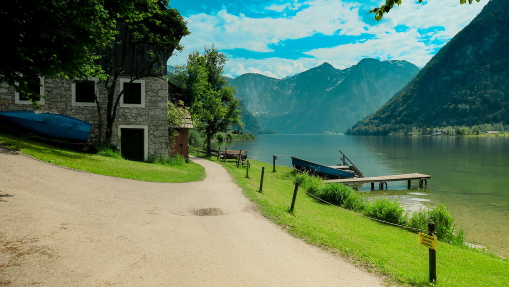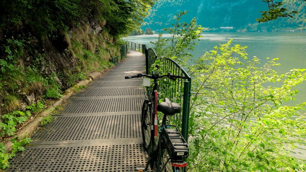 Obertraunból észak felé indulunk a gyalogos-kerékpáros úton a vasútállomás felé. Az út egy szakaszon közvetlenül a vízparton halad, pazar kilátással a túlparton lévő Hallstattra. A vasútállomás után a kerékpárút egy rövid szakaszon a víz fölé függesztett szűk rámpán halad.