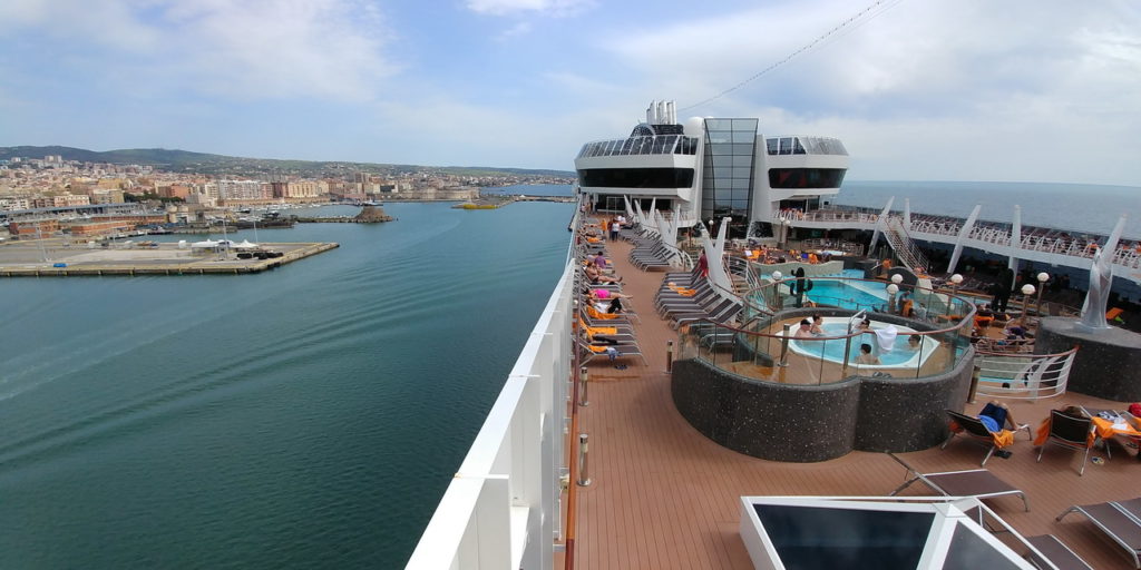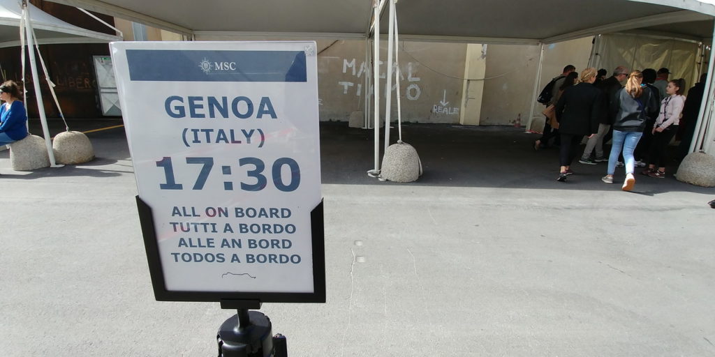 A hajó papíron Rómából indul, de valójában a 70 km-re lévő Civitavecchia kikötőjéből. A hajó indulása 17 órára volt kiírva, de kérték, hogy 14 óráig csekkoljunk be (ne feledjük 4300 utasnak kell felszállnia), Civitavecchiaba eljutni legalább egy óra, egy fapados bármikor késhet vagy törölhetik a járatot, így nem kockáztattuk a befizetett hajóutat, egy nappal korábban repültünk.