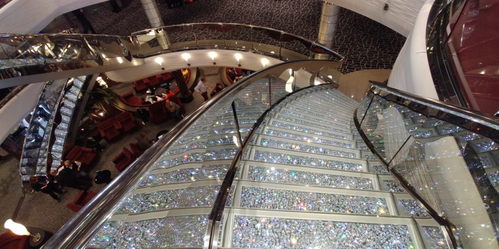 A személyes élmények és benyomások előtt kezdjük a számokkal. Az úszó erőd pontosan egyharmad km, azaz “kerek” 333,3 méter hosszú, 38 méter széles, magassága 66,7 méter, 18 emelet, összsúlya 139 000 tonna, de így is 23,75 csomóval, azaz majdnem 44 km/h max. sebességgel tud rombolni.