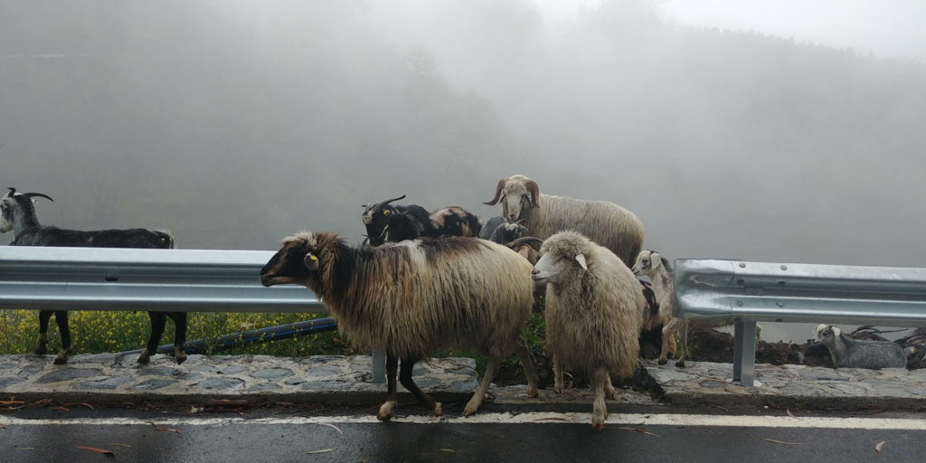 Az étteremről elvileg 1 óra alatt fel lehet jutni a 32 km-re lévő hegyi faluba Tejeda-ba, de olyan brutál köd volt, olyan meredek és keskeny út, hogy én, aki nem arról vagyok híres, hogy lassan vezetek, 1 óra alatt csak a 22 km-re (!) lévő elágazásig jutottam (bár valószínű, hogy a GPS nem a legoptimálisabb útvonalon hozott), miközben egyre nagyobb köd lett, szitált az eső és mintha idejekorán elkezdett volna sötétedni is. Szóval úgy döntöttem, hogy van itt a szigeten több mint 2 hetem, elengedem a mai csúcshódítást tervét és inkább a Terorban foglalt szállásom felé veszem az irányt.