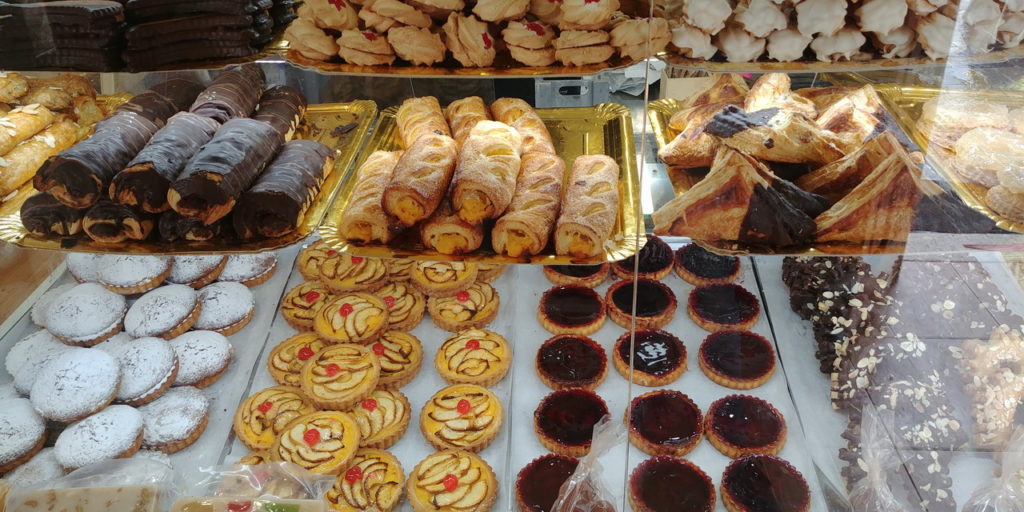 Artenaratól mindössze 8 km, de az időjárás közben egy kicsit javult, az eső még szemerkélt ugyan, de legalább nem szakadt és az esernyőtépő szél is csendesedett valamelyest és a kanári viszonylatban zordnak mondható idő és 1000 méteres tengerszint feletti magasság ellenére, virágok, pálmák, narancs- és citromfák sorakoznak a sétálóutcában. Sőt ilyenkor február végén, március elején virágba borulnak Tejeda mandulafái is, ez az időszak a mandula fesztivál szezonja is. A városka egyetlen, de a környező völgyekre, hegyekre panorámás (látszik a Roque Nublo és a Bentayga is) sétálóutcájában egymás mellett sorakoznak, a Tejeda híres pékségei és a cukrászdái, amelyek részben a helyben termő mandulára alapozzák a kínálatukat, amit kár lenne kihagyni. Az egyik jellegzetes hely kanári desszert a Bienmesabe, amelyet mézből, tojássárgájából és őrölt mandulából készítenek. Én végül a Dulces de Tejeda-ban tankoltam fel két papírzacskónyi édességet, nehogy hazafelé leessen a cukrom.