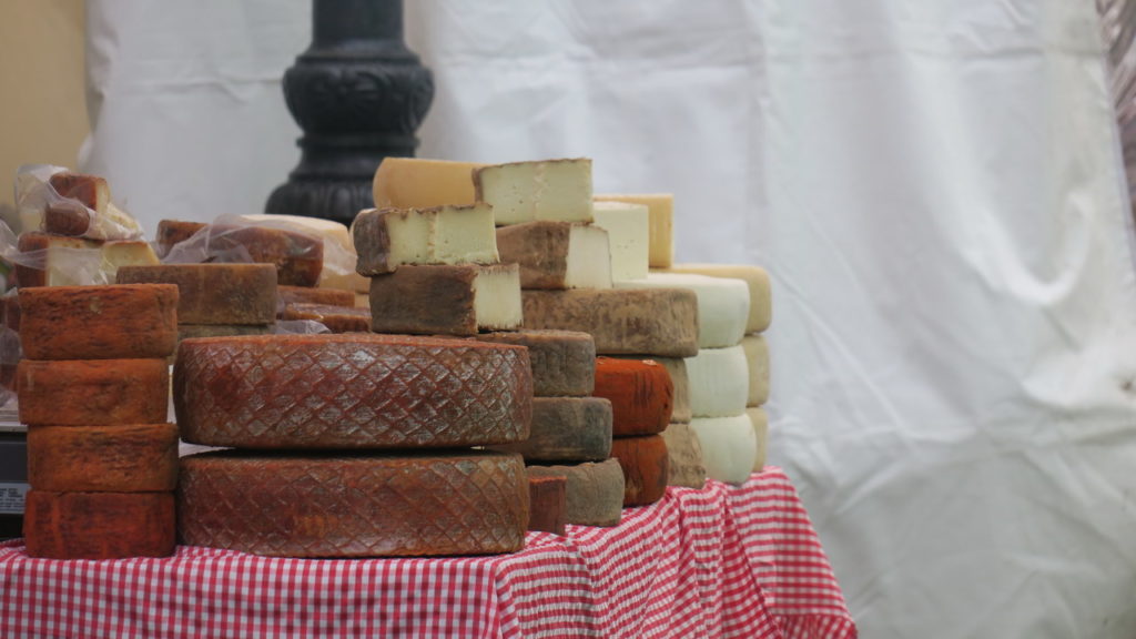 A piac legjellegzetesebb portékái a híres terori chorizó és a brutál kézműves sajtok, persze az édességek, kézműves termékek és virág sem maradhattak el, de volt például kürtöskalács is (!), magyarul is kiírva. A legnagyobb hangulat persze a mojitos standnál volt, ahol a hűvös, ködös hegyi környezet és szemerkélő eső ellenére pörögtek a kubai ritmusok, a szalmakalpos úriember pedig igazi cukornádból préselte az alap juicet a klasszikus mojitohoz.