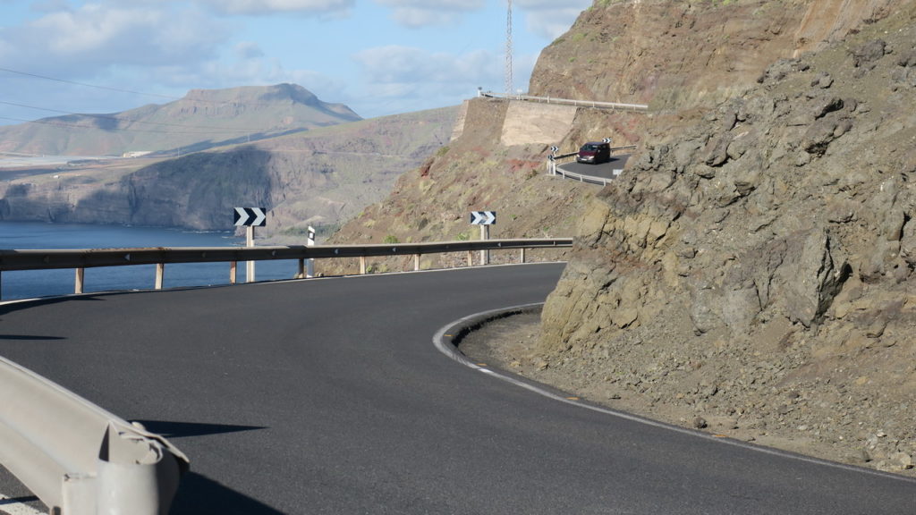 Az Agaete – Puerto de Mogan út kb. 110 km, 1ó 20p, ha az óramutató járásával megegyezően a GC1 + GC2 autópályákon keresztül közelítjük meg, de én természetesen a kalandosabb, a Tamadaba hegységen keresztül vezető GC-200-as, hajtűkanyarokkal tűzdelt szerpentines utat választottam, ami a maga 65 km-es távjával ugyan rövidebb, de nagyjából 2 óra legyűrni.