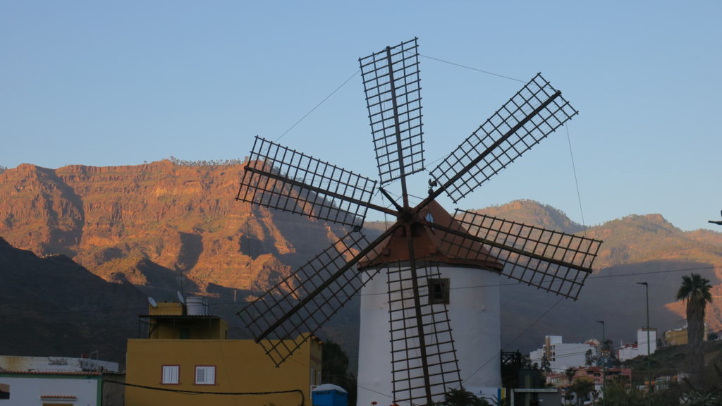 Aztán tartottam egy rövid pihit az útmenti Las Canadas étteremnél, utána nem sokkal a naplemente közeledtével megálltam Mirador de Veneguera kilátópontnál pár fotóra, majd Moganban a szélmalomnál és innét már csak 10 perc volt legurulni a tengerpartig Mogan kikötőjébe.