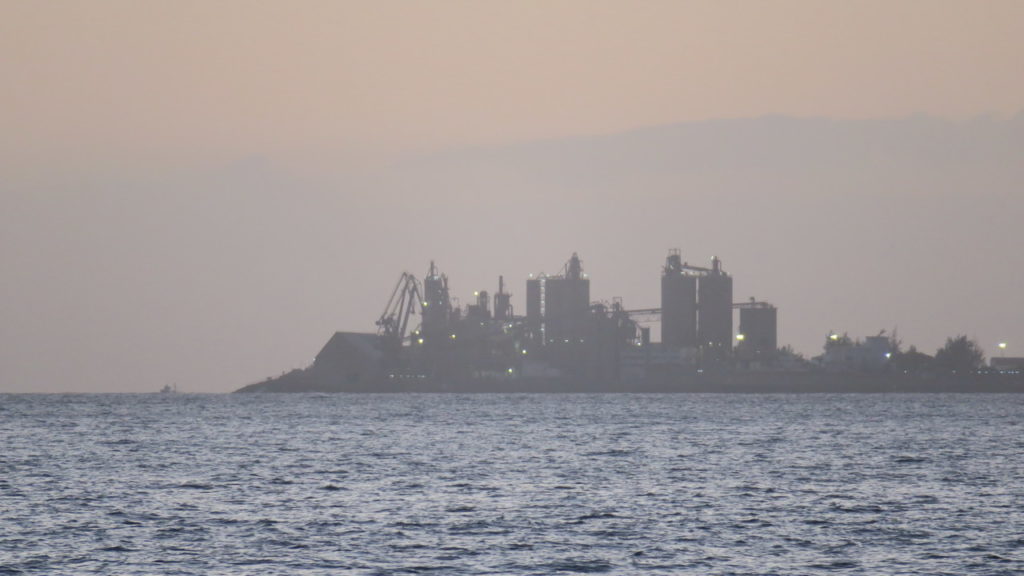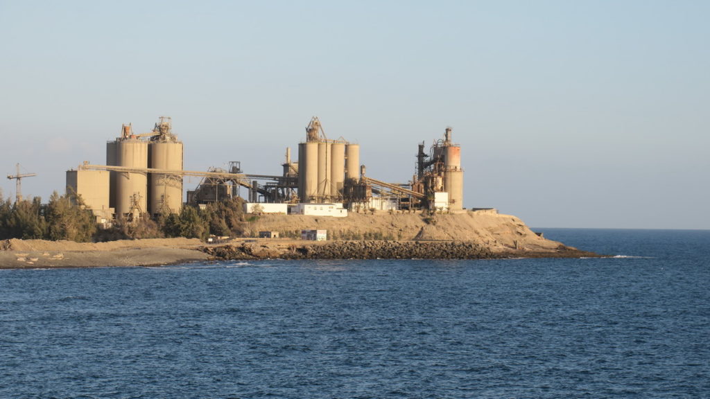 Arguineguínnek van még egy – igaz kevésbé turistamágnes – nevezetessége, ami Gran Canaria szinte összes népszerű strandjáról látszik, az óceába nyúlva, mint a főgonosz industrial főhadiszállása uralja a sziget legszebb partszakaszát, ez pedig nem más, mint a brutalista cementgyár, amelynek az abszolút tájidegen ipari silói, éppúgy látszanak a 15 km-re északnyugatra fekvő Puerto de Mogánból, mint a 10-12 km-re délnyugatra lévő maspalomas világítotorny lábától. Nehéz olyan fotót készíteni, hogy ne trollkodjon bele a háttérbe.