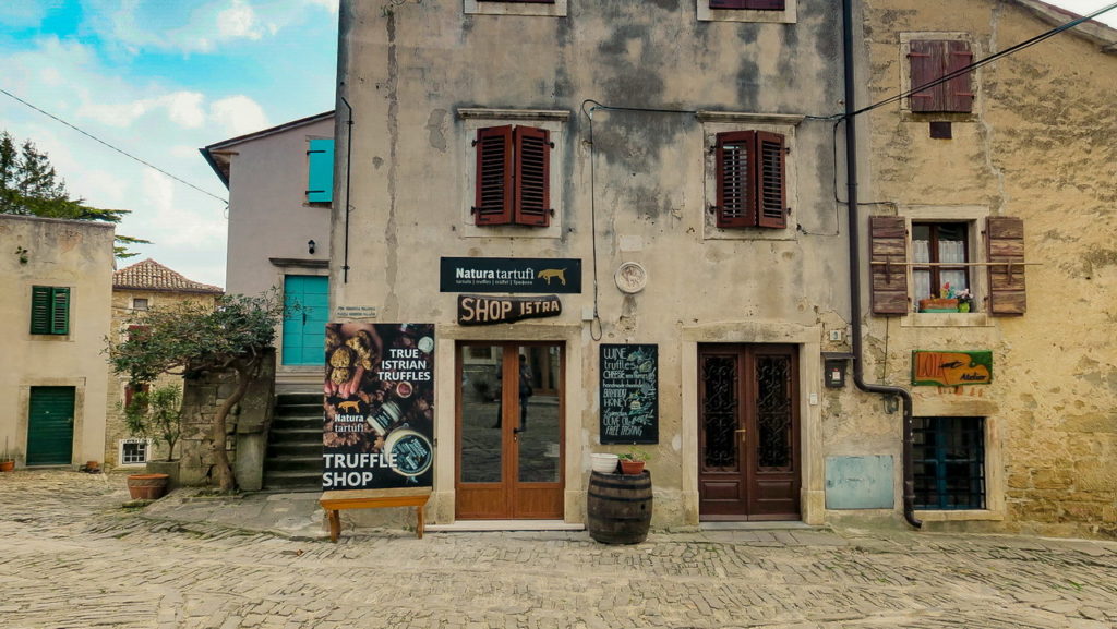 A környező tölgyesek tele vannak szarvasgombával. Általában ősszel indul a vadászat az erre kiképzett kutyákkal. A környék olyan gazdag az aranyárban mért gombában, hogy több családnak is ez biztosítja a megélhetését. A kisboltok polcai roskadoznak szarvasgombás portékáktól és a helyi éttermek étlapján is megtalálhatóak a föld alól kitúrt kincsből készült fogások, legyen az a Konoba Mondo vagy a Zigante.