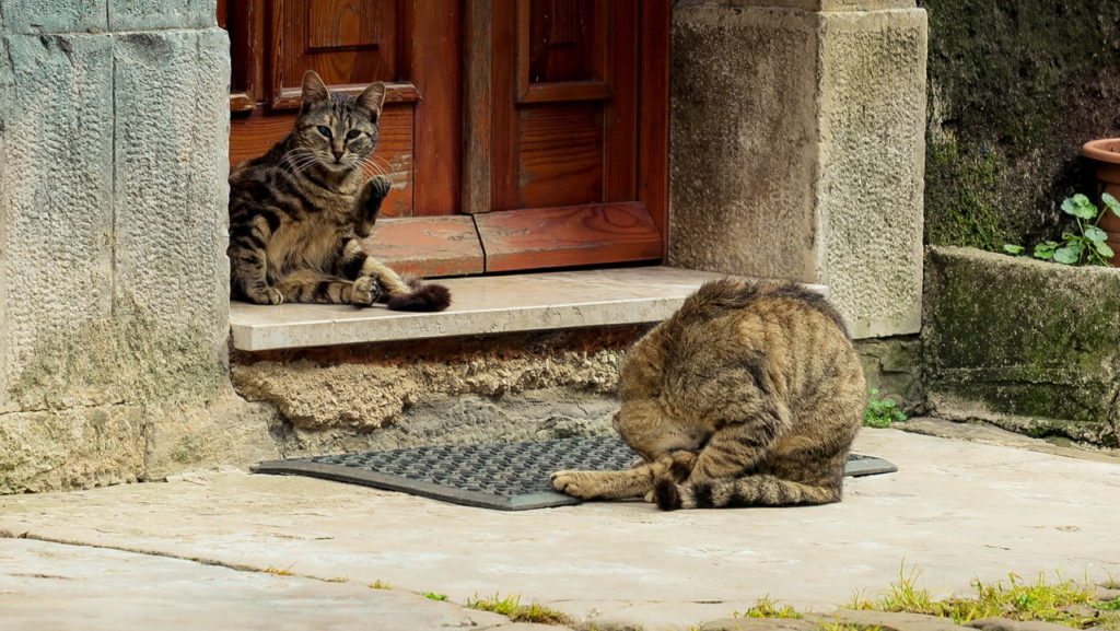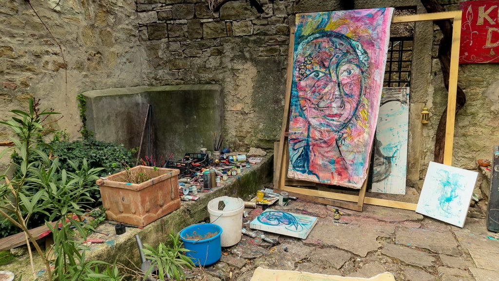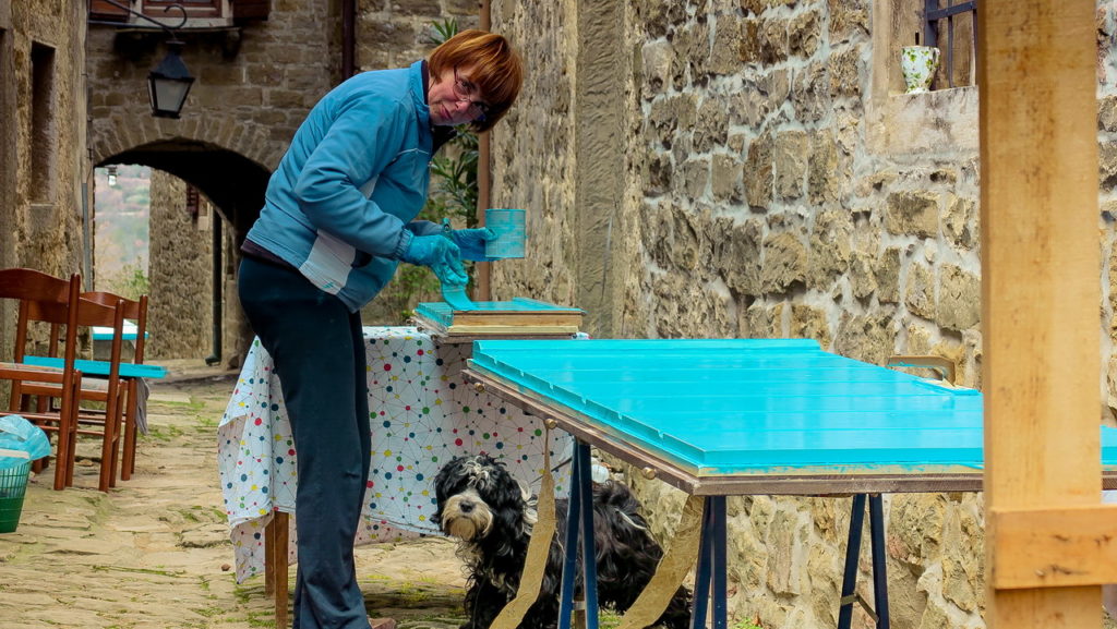 Mi még a március 15-i hosszúhétvégén jártunk itt, akkor a falu még csak ébredezett, de a helyiek már elkezdtek készülni a szezonra, nyári rohamra. Az ódon kőházakat élénk, türkizkék zsalugáterek dobják fel, amelyeket minden tavasszal leszerelnek és újrafestenek. Márciusban pont ez történt. Emellett már a galériák, kávézók, kézműves boltok nagyrésze is kinyitott, de látogató, rajtunk kívül, még alig akadt, csak a helyi macskák sütkéreztek a macskaköves utcákon.