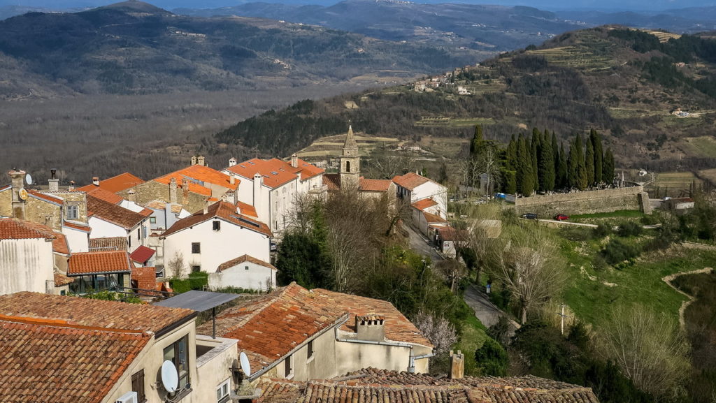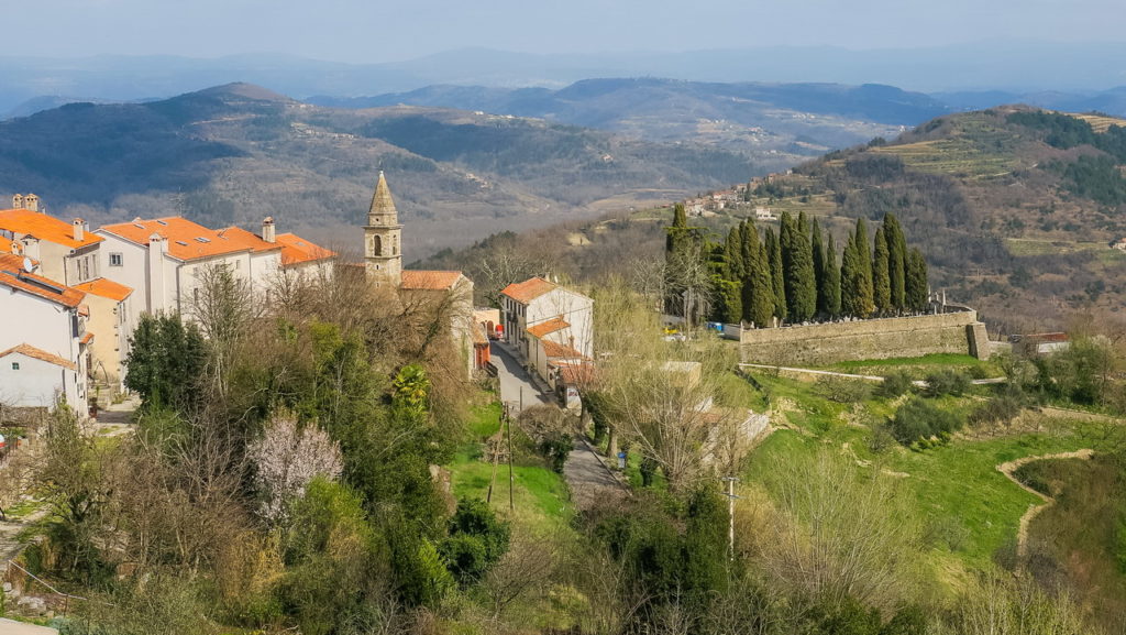 [dropcap type=”full” ]A[/dropcap] többség beül az autóba, belövi a tempomatot 150-re, aztán 5-6 óra múlva beparkol a rovinji apartman udvarára, a következő hét napban pedig csak a strand-apartman-óváros háromszögben mozog, legfeljebb egy hajókirándulás keretében megnézi a szomszédos part menti településeket. Pedig az Isztrián a tengerparton túl is van élet és látnivaló. Az Adriától kicsit eltávolodva a szárazföld belseje felé találjuk a horvát Toszkánát, egy csipetnyi Olaszországot.