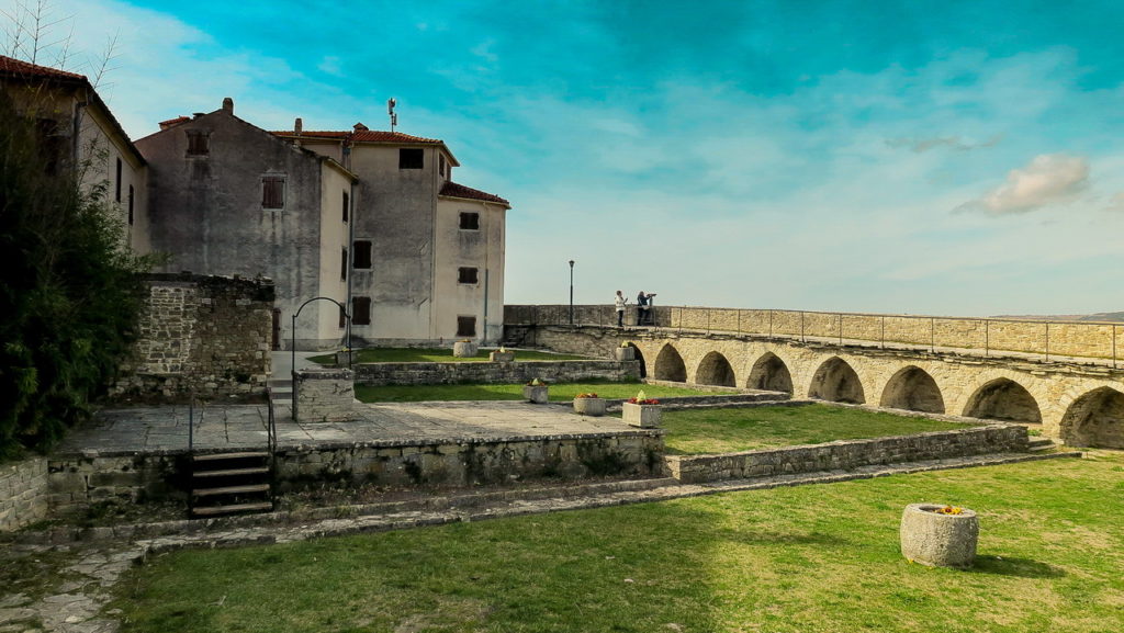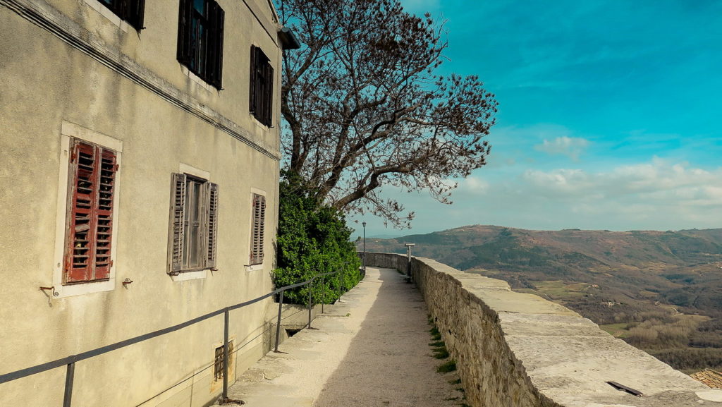 Mindössze 18 km-re Groznjantól és ahhoz hasonlóan egy 277 méter magas domb tetején helyezkedik el, de a szinte teljesen sík környezete miatt lényegesen magasabbnak és meredekebben tűnik.