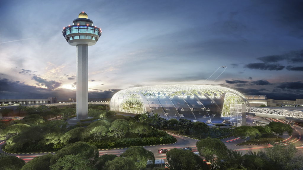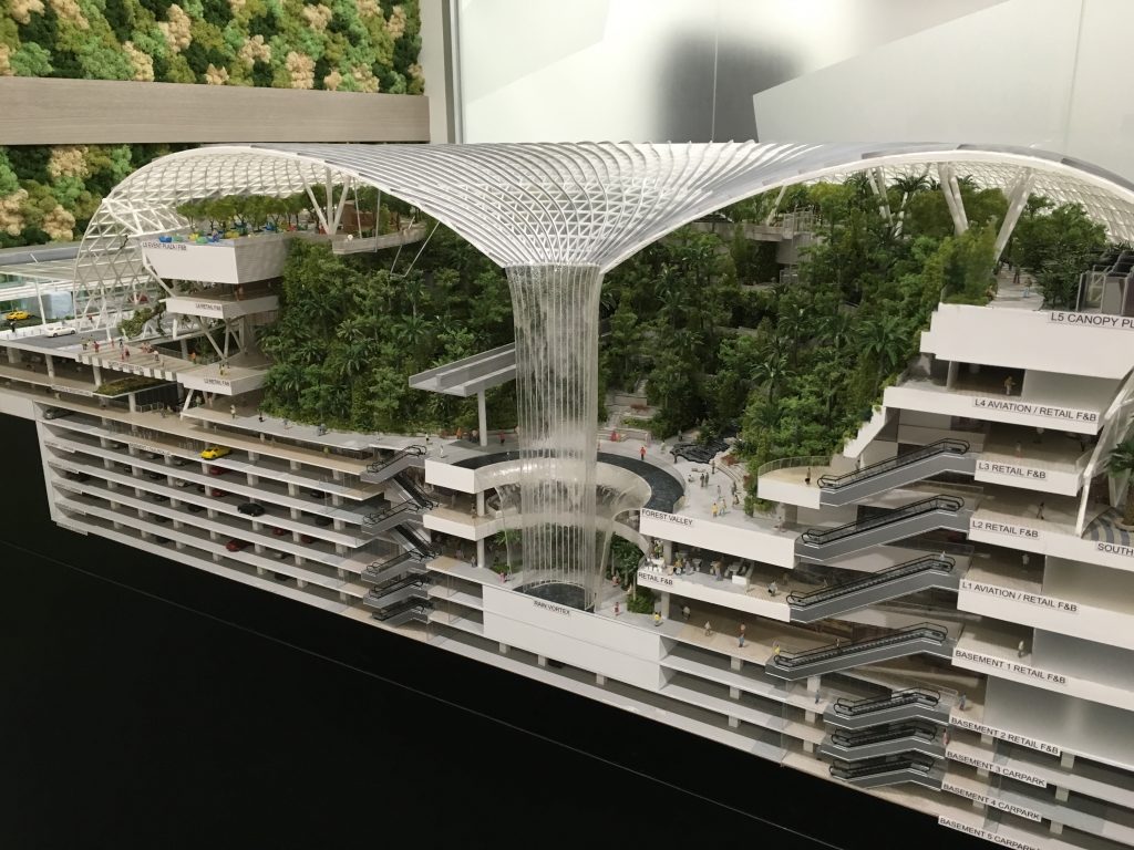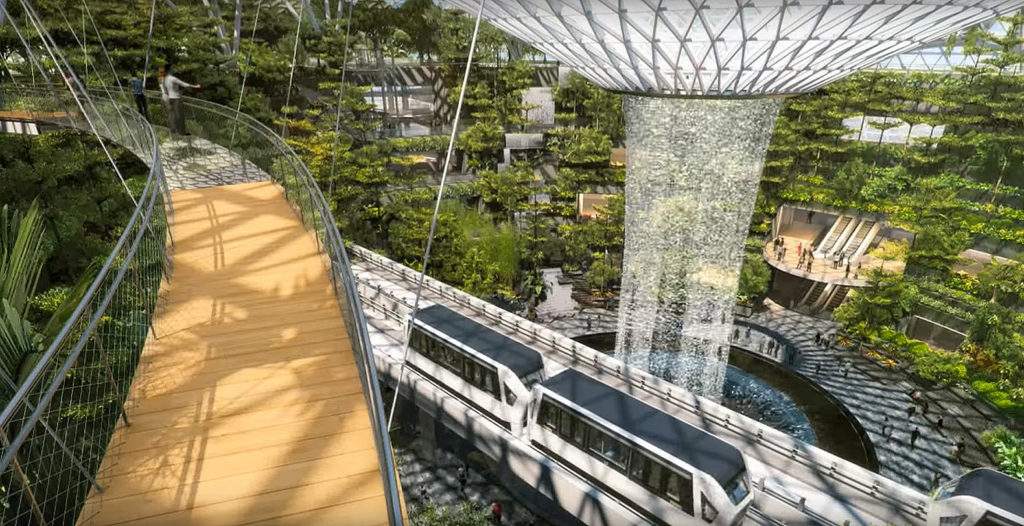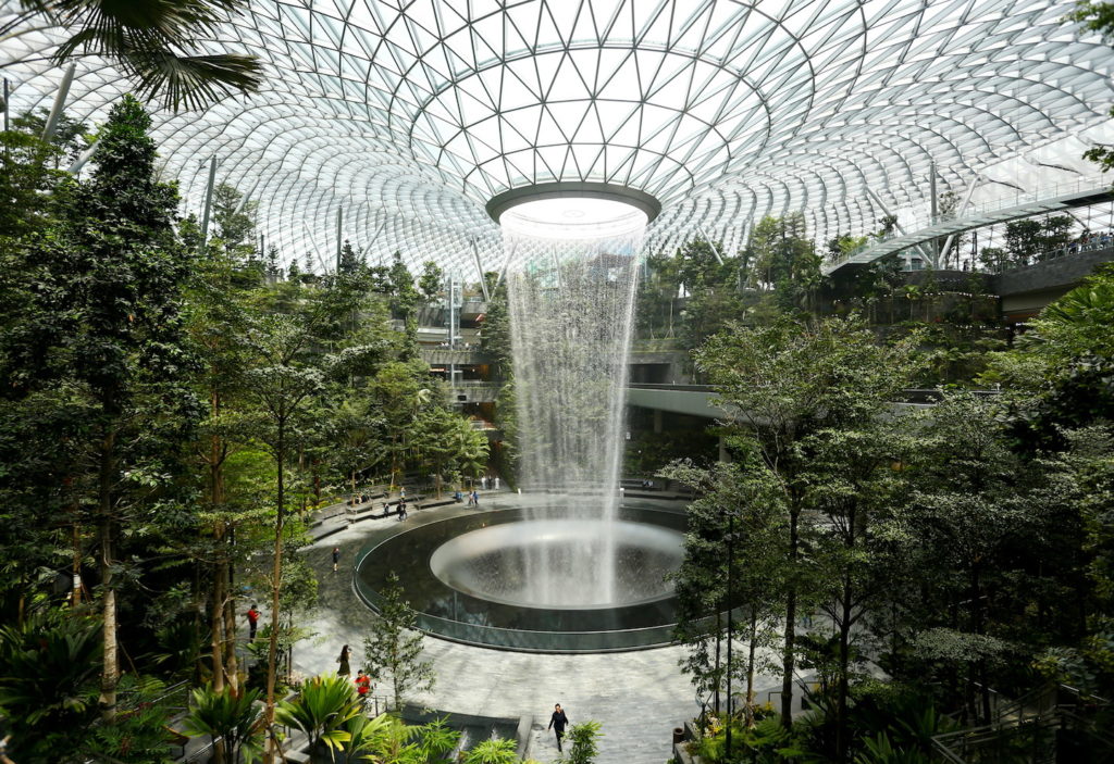 Átadták a világ legmenőbb repülő terminálját! A szerényen csak Jewel-nek (drágakő) keresztelt 10 szintes UFO egy komplett 4 hektáros esőerdőt 3000 fával, a világ legnagyobb beltéri vízesését (40 méter), egy 130 szobás YotelAir szállodát és számos hasonló extrát, leg-leg-et és hi-techet rejt magában.