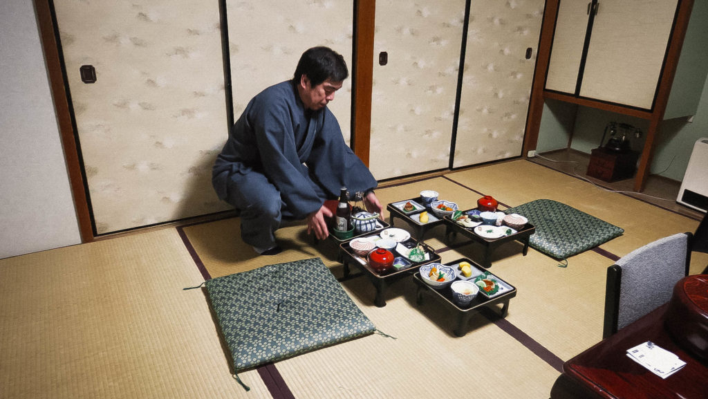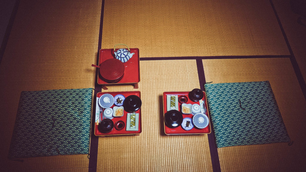 Vacsora után a szerzetesek elviszik a tálcákat, majd lepedővel, paplannal, párnával megágyaznak a tatamira. Hosszú nap volt, hamar bealszunk.