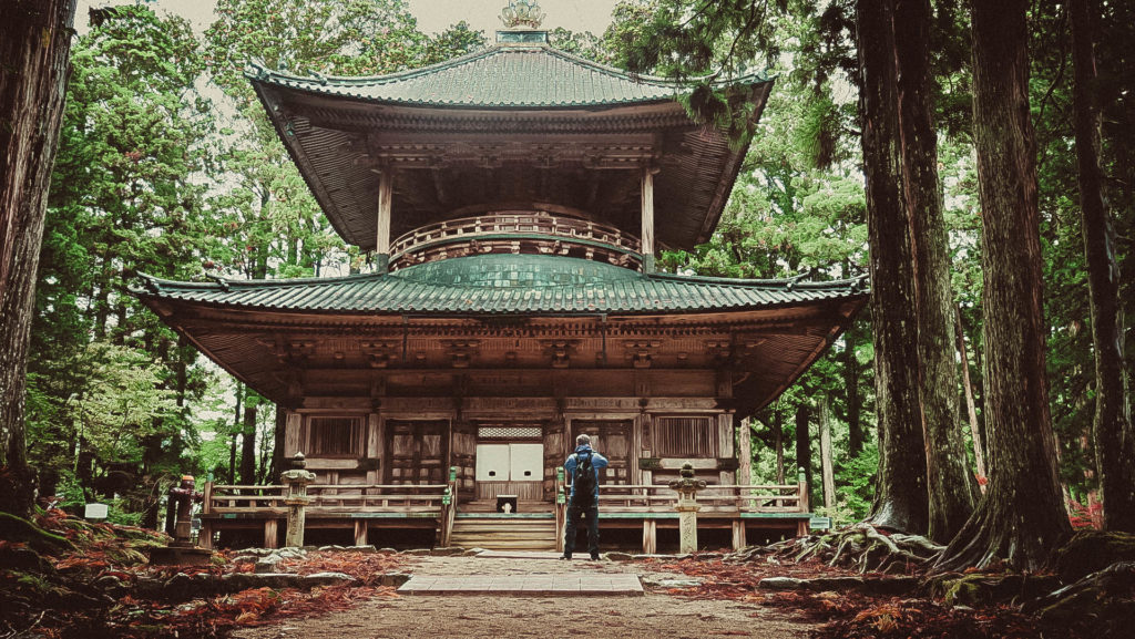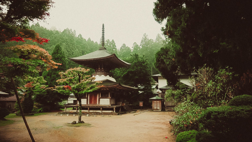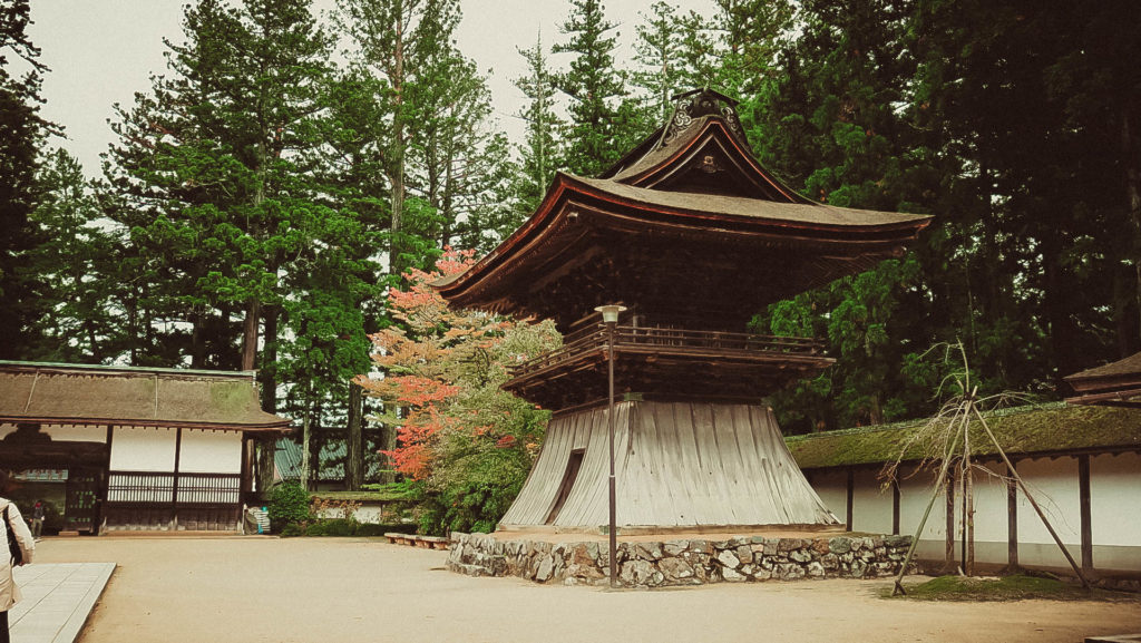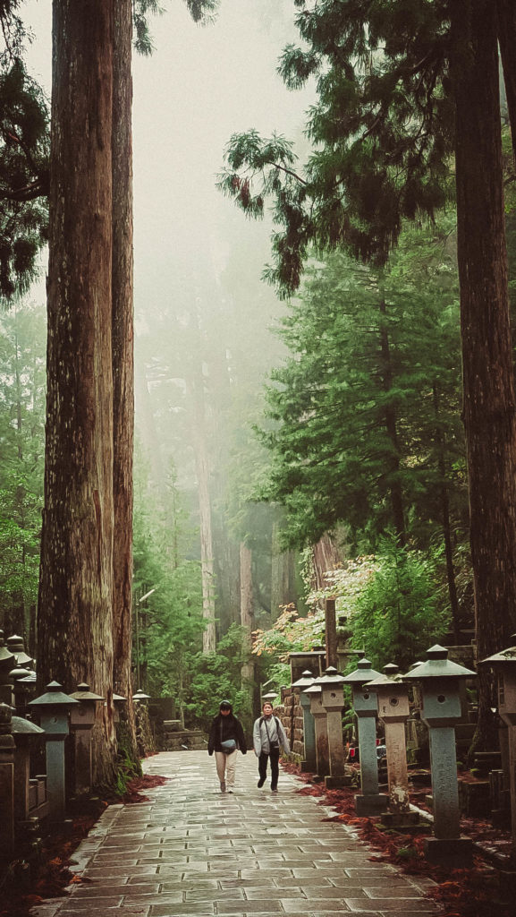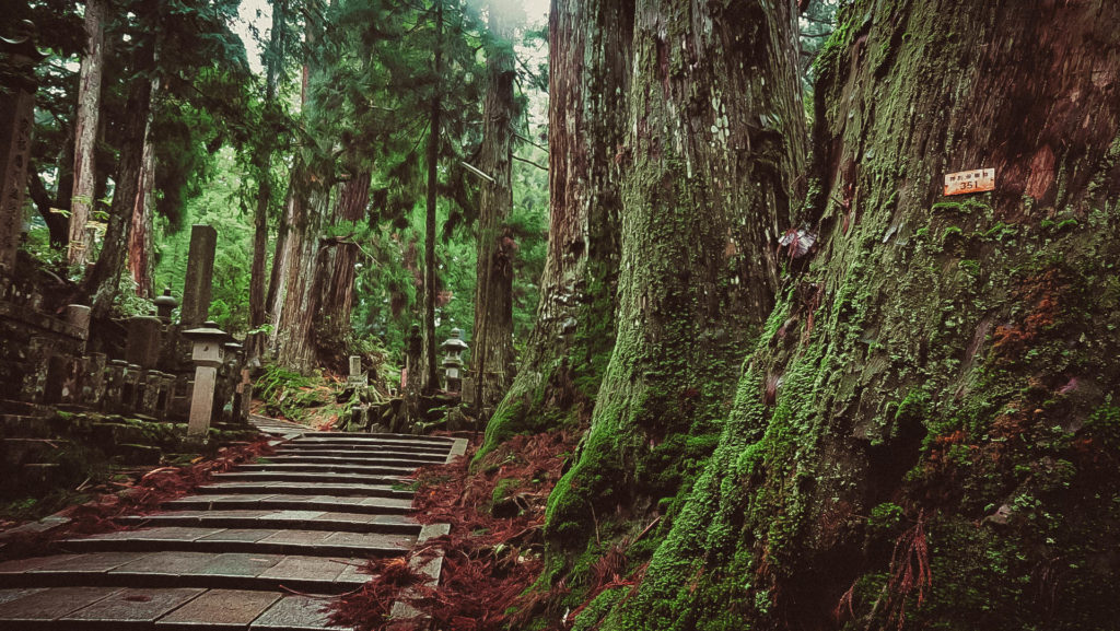 Narából kb. 80-90 km, az utolsó 15 km-en pedig hajtű kanyarokkal tűzdelt szerpentinen kúszunk felfelé, néhol alig fér el két autó egymással szemben. Ahogy haladunk felfelé, csökken a hőmérséklet, megyünk bele a felhőbe, körülbelül 2 óra telik el mire megérkezünk Koya-san-ba.