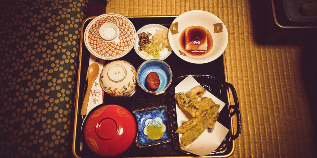 A szobába visszatérve érkezik a szokásos vegán vacsora. Holnap pedig kora reggel tovább Tokushima tartomány felé.