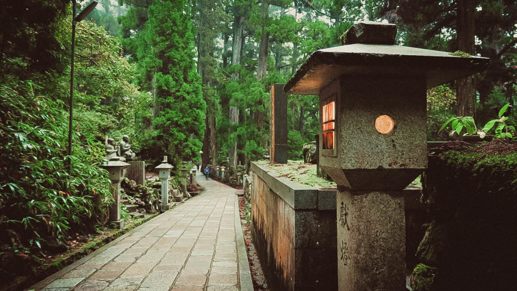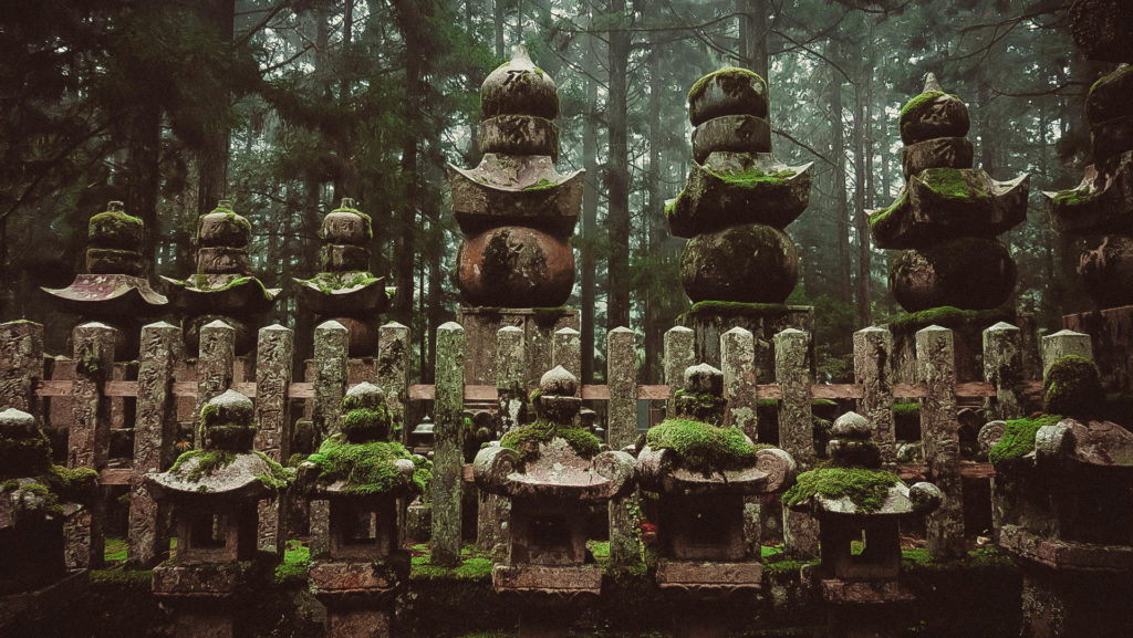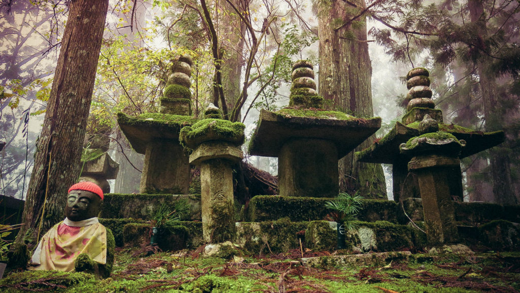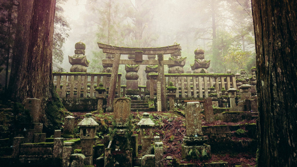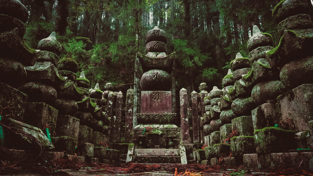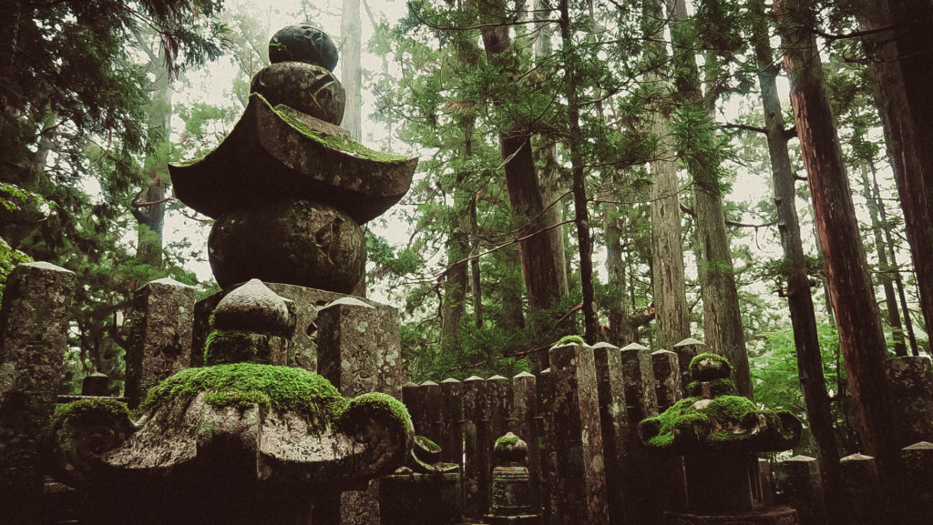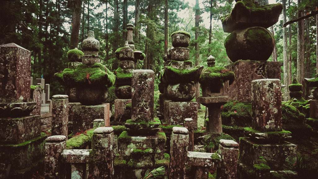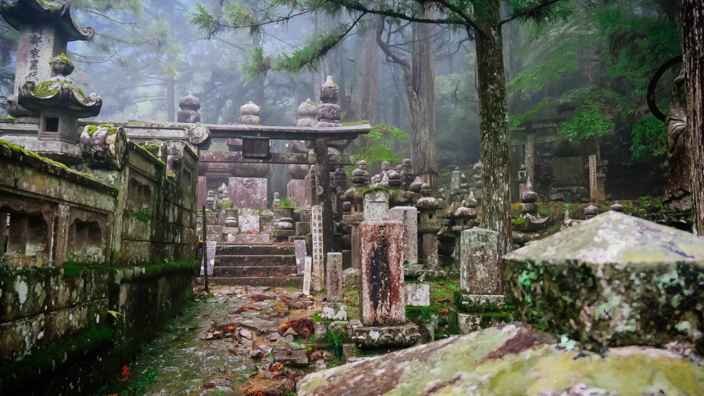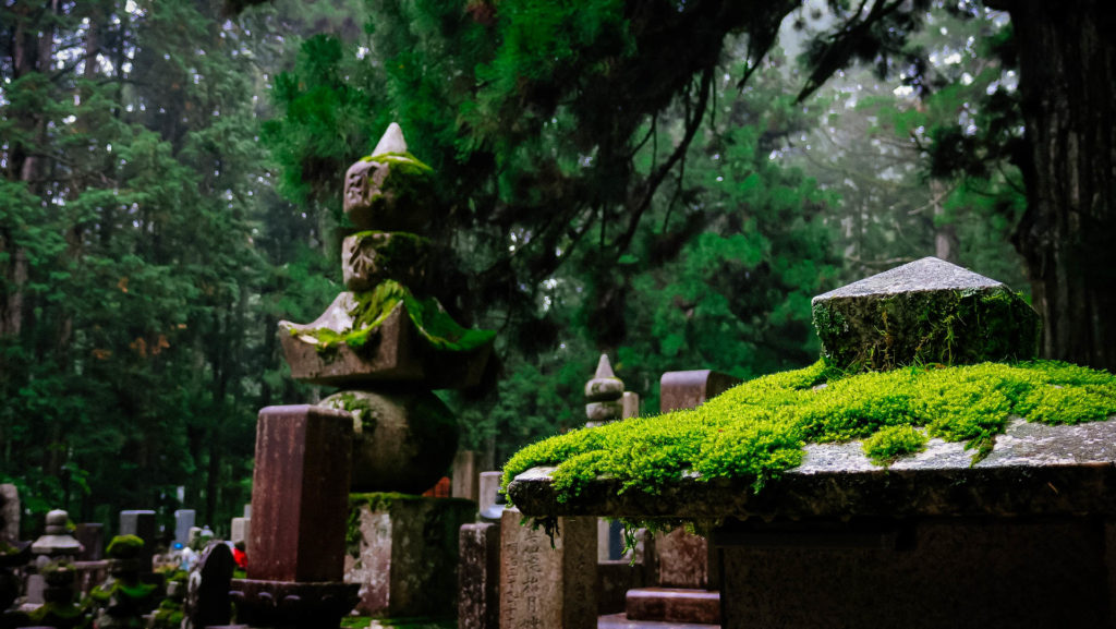 Az Okunoin temető Japán legrégebbi (IX. század) és legnagyobb (200.000 sírhely) temetője. A hazai temetőkkel ellentétben, azonban a kőből készült emlékhelyek alatt nem nyugszik senki, a hamvak a 2 km hosszú temető végében található mauzóleumban vannak.