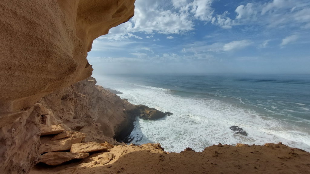 Ma délelőtt Taghouzoutból Essaouiraba indulunk az N1-es úton. A kb. 160 km / 2,5 órás út első negyede a látávnyos óceánparton vezet végig. Útközbeni megállónak a Timlalin dűnéket és a Jimmy Hendrix cafét néztük ki, de alig fél óra utazást követően random első pihenőként megálltunk pár percre a Tamri kilátópontnál egy igazán autentikus kávéra. Marokkóban nagyon népszerűek az út mentén, a semmi közepén parkoló furgonokból kialakított mini kávézók, coffeetruckok. Az autók hátsó felében általában már sokat megélt, de neves olasz kávégép márkák (La Cimbali, Wega stb.) adagolták a espressokat. Szóval koffeinfüggőknek megerősítés: Marokkóban nem csak menta tea létezik.