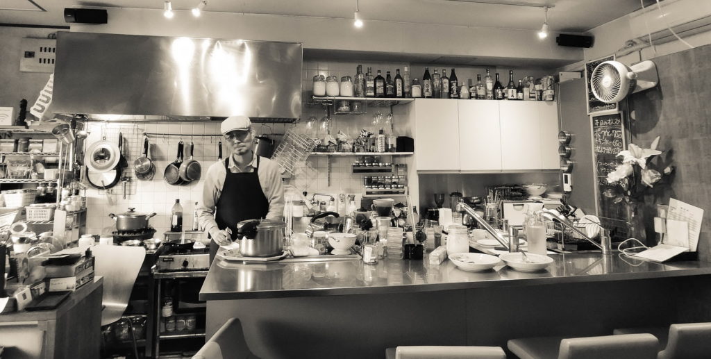 A kaja egyszerű, de teljesen korrekt, ár/értékben is rendben van (750 yen a nagy adag). A curry után pedig hozzáértő filter kávé készül V60-assal. Élmény volt, megérte a benyitás.