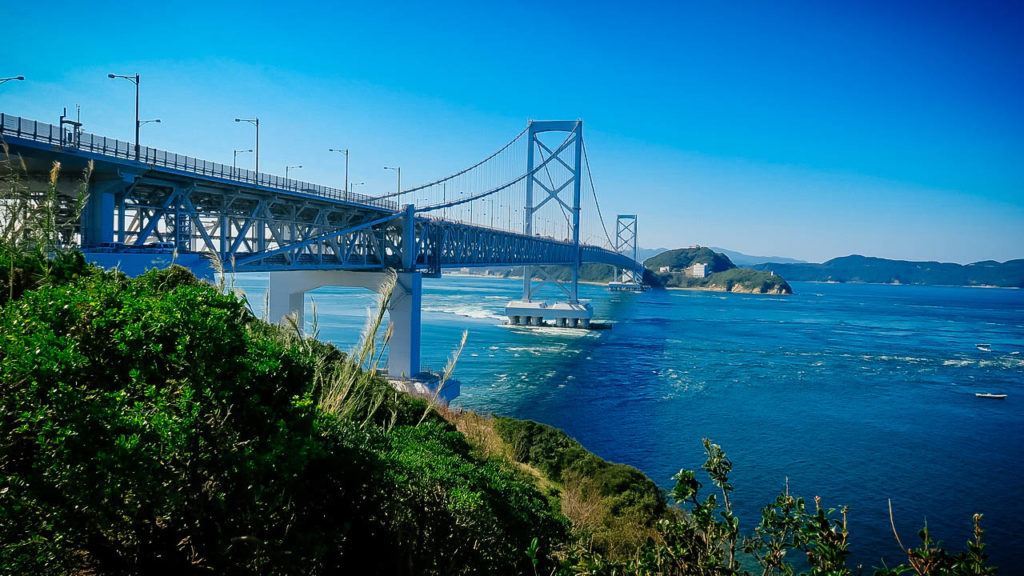 A kb. 1600 méter hosszú Naruto függőhíd (vagy ahogy a helyiek hívják Onaruto) köti össze Awaji és Shikoku szigetei közti tengerszorost, ahol a híd alján végigfutó üvegpallókról vagy sétahajókról egy érdekes természeti jelenséget figyelhetünk meg, ha jó időzítéssel érkezünk.