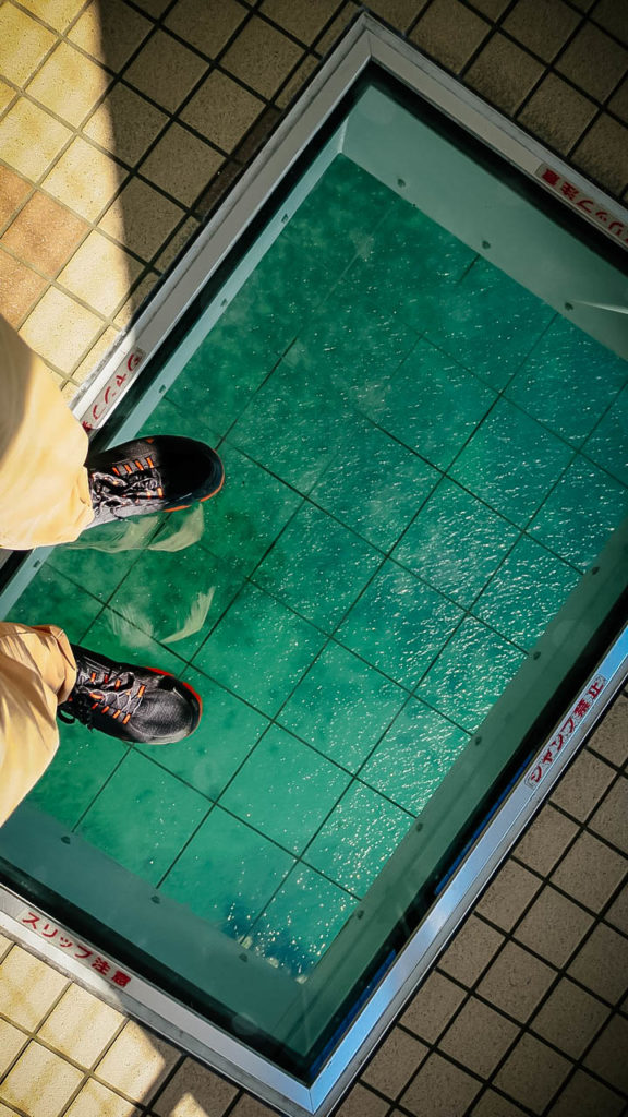 A belső tenger és az Atlanti-óceán a Naruto-híd alatt találkoznak és ár-apálykor a vízszint emelkedés miatt a szorosban nagyon erős áramlatok alakulnak ki, amelyek hatalmas, olykor 20 méter átmérőjű és 2-3 mély örvény-tölcséreket alakítanak ki. Apály-dagály és így az örvények is naponta kétszer tekinthetőek meg és egy-egy szűk 45 perces időtartamban teljesednek ki, így az időzítés nagyon fontos. Egy online előrejelző naptár szerint belőhetjük a kb. időpontot (timetable helyet tidetable), de ez minden nap 50-60 perccel arrébb tolódik, így fontos a konkrét dátum is. A forgalom is kisebb kitérő miatt nagyjából az időintervallum végére értünk oda, így látni véltünk egy-egy kisebb örvényt, de azokat akár az örvénynéző sétahajók is kelthették. Sajnos az interneten található, illetve a helyszíneken kifüggesztett fotókon látható félelmetes méretű tölcséreket nem sikerült megtapasztalni, de a híd környéke ennek ellenére egy kellemes megálló. A híd alján lévő üveg pallókon ki lehet sétálni majdnem a szoros harmadáig, illetve érdemes felmenni a kilátóba is, amely körül éppen sasok köröztek.