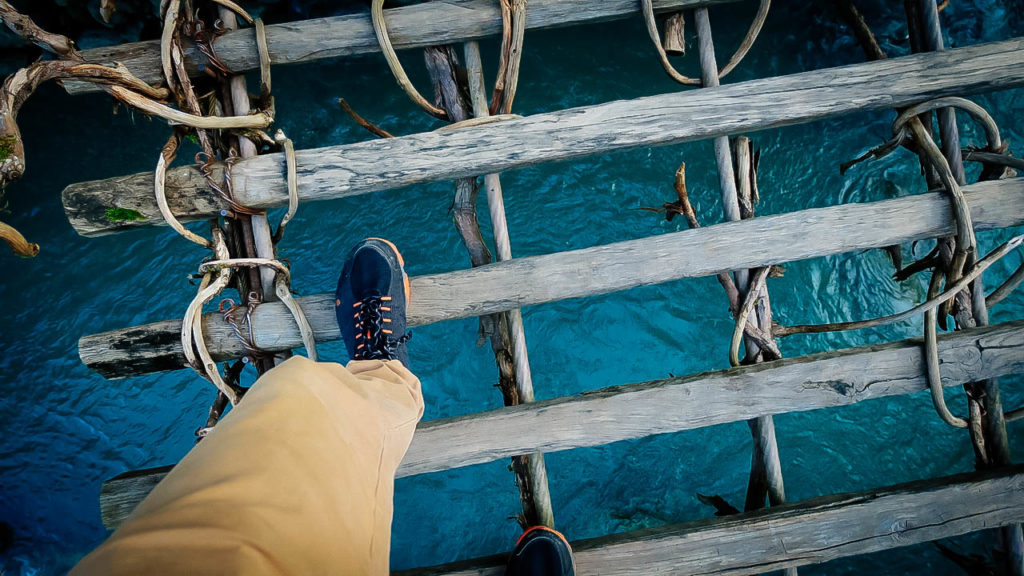 Miután a hídon elkészítettük a kellő mennyiségű szelfit, videó, instagram contentet, kis kerülőúton lesétáltunk a folyómederhez, ahol a sziklákra kapaszkodva majdnem a folyó közepéig be lehet sétálni és további remek fotókat lehetett lőni.