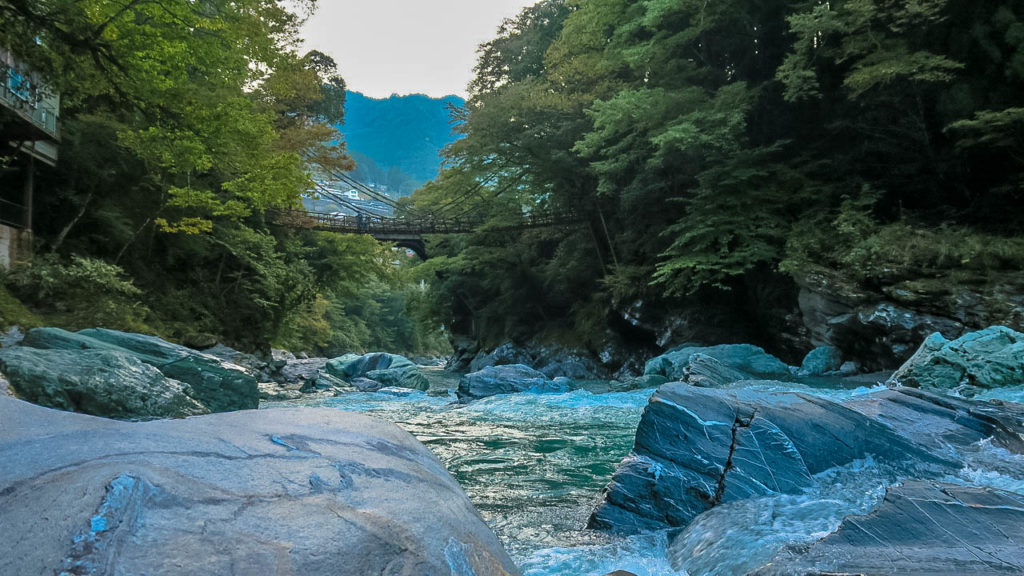 Ma esti szállásunkat egy két utcából álló kis erdőszéli településen foglaltuk a hegyek között, kb. 500 méterre a Kazurabashi függőhídtól, amit mindenképpen szerettünk volna ellenőrizni. Sötétedés előtt másfél órára sikerült az úticélhoz érkezni, így a szállás helyett gyorsan a híddal kezdtünk.