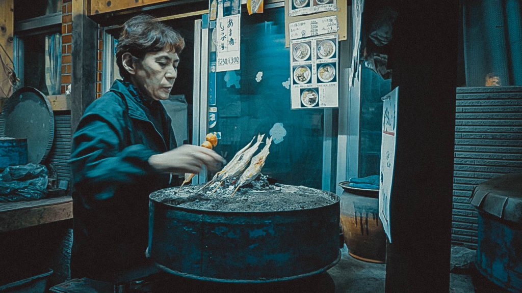 A japán konyha remek és egészséges, így az utazás során gondosan figyeltünk arra, hogy egyetlen étkezés se maradjon ki:) és zacskós levesek, extrudált kenyér és kekszek helyett a körülményekhez képest azért mindig adjuk meg a módját, hiszen helyi konyha megtapasztalása, legalább akkora élmény, mint maga az utazás. Na most itt voltunk sötétedés után az isten háta mögött a hegyek között egy pár lelket számláló településen, ahol se étterem, se büfé, az egyetlen bolt pedig már bezárt, sőt közvilágítás sem volt. Itt bántuk meg utólag, hogy nem vállaltuk be a hurkapálcás pisztrángot a függőhíd közelében.