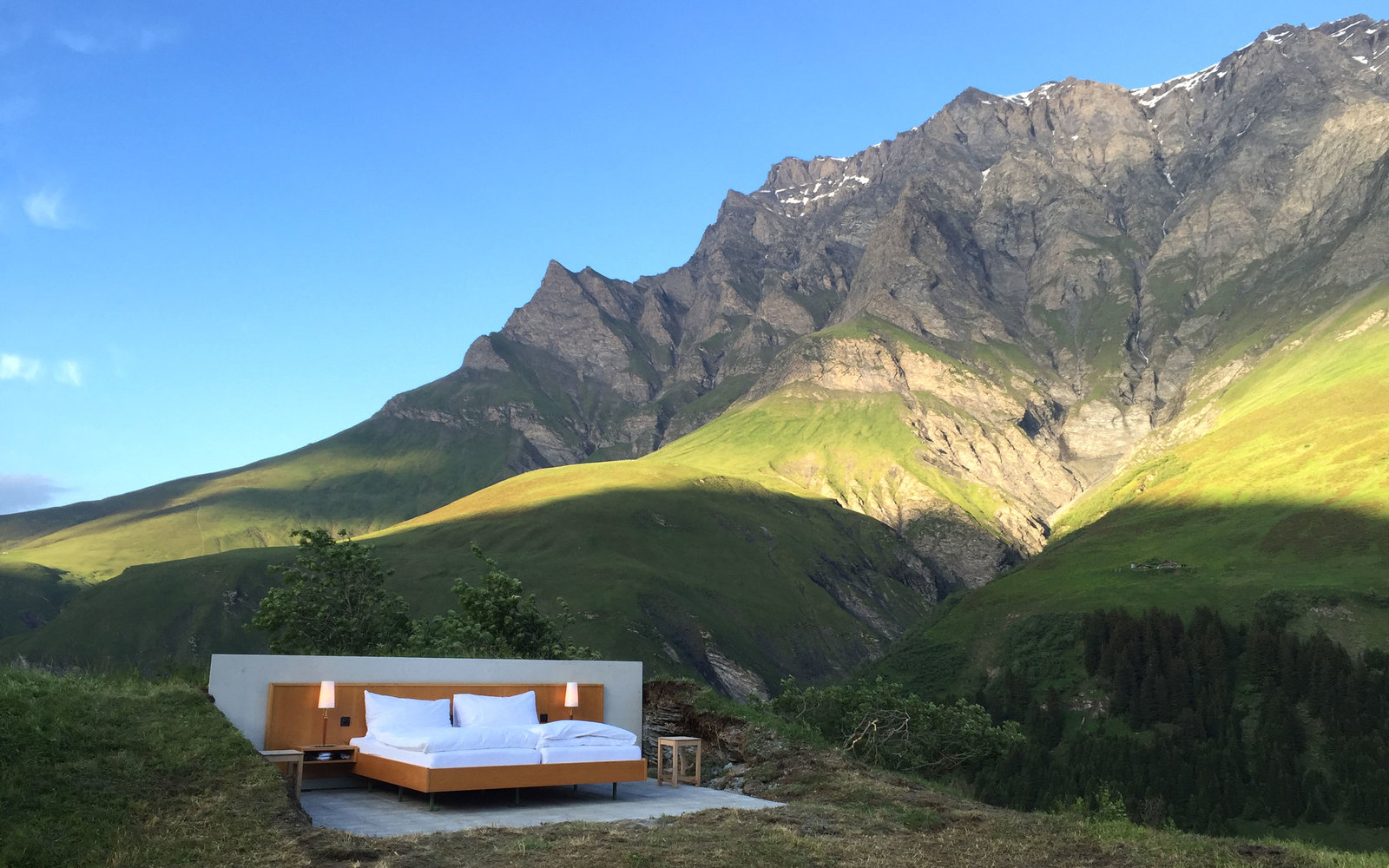 A Null Stern Hotels, avagy a nulla csillagos hotel a Graubüdeni hegyekben, minimális felszereltséggel várja az érdeklődőket: ennek a szállodának nincsenek falai, se teteje vagy fürdőszobája, mindössze egy ágyból, két lámpából és egy lélegzetelállító panorámából áll, amiért éjszakánként 250 dollárt (kb. 70 000,- forint) kérnek. Az ár tartalmaz egy reggeli szendvicset és kávét is, amit stílusosan egy komornyik szolgál fel. A legközelebbi mellékhelyiség 10 kilométerre található, de a természetben bárki elintézheti a dolgát. A „szoba” tavasztól őszig foglalható, de rossz idő esetén a foglalást még az utolsó pillanatban is törölhetik.