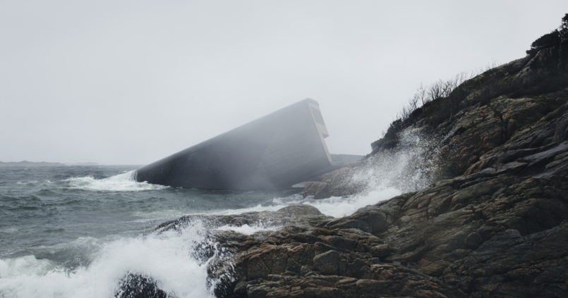 Mint egy zátonyra futott hajó, partravetett konténer vagy a szárazföldről a tengerbe sodort nyári lak, úgy tűri a sziklák közé ékelődött monolit a morcos tenger hullámainak csapkodását. Balesetről persze szó…