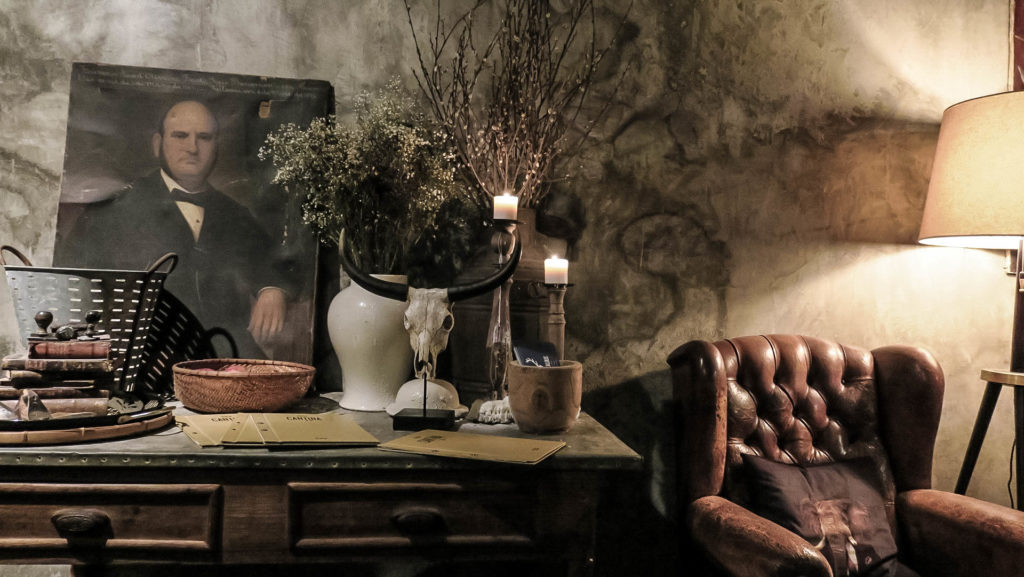 A hely egyáltalán nem fine dining, nem feszengős, inkább az ellentéte, majdnem hogy romkocsma, de remek konyhával, közvetlen kiszolgálással. Szakadt bőrfotelek, látszóbeton fal, össze kukázott, de ízléses századeleji bútorok. A fő teremben vannak kisebb, 2-4 személyes asztalok is, de a nyitott konyhával szemben a félig előtérben csak két nagy 10-12 személyes asztal sörpaddal, ahol simán összeültetik a teltháznál, foglalás nélkül próbálkozó éhes magyar turistát, a franciával, angollal, helyiekkel. De ezt nem hogy sérelmeztük volna, hanem külön jó pont a hangulathoz.