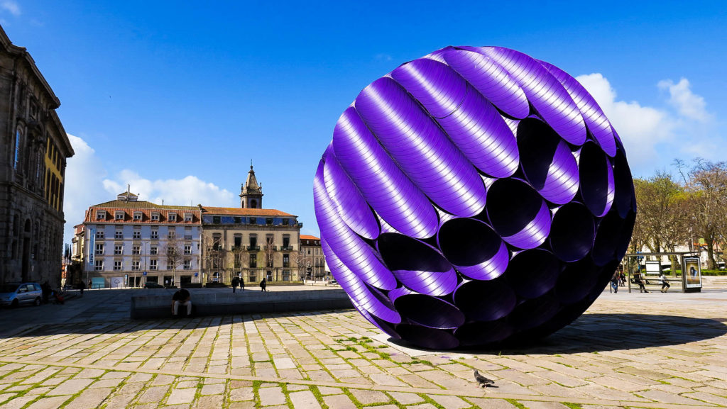 A torony mellett található a fotográfiai intézet, ottjártunkkor pedig az épület előtti téren egy hatalmas lila gömb installáció feszített és ünnepelte Porto 20 éves Unesco tagságának évfordulóját.