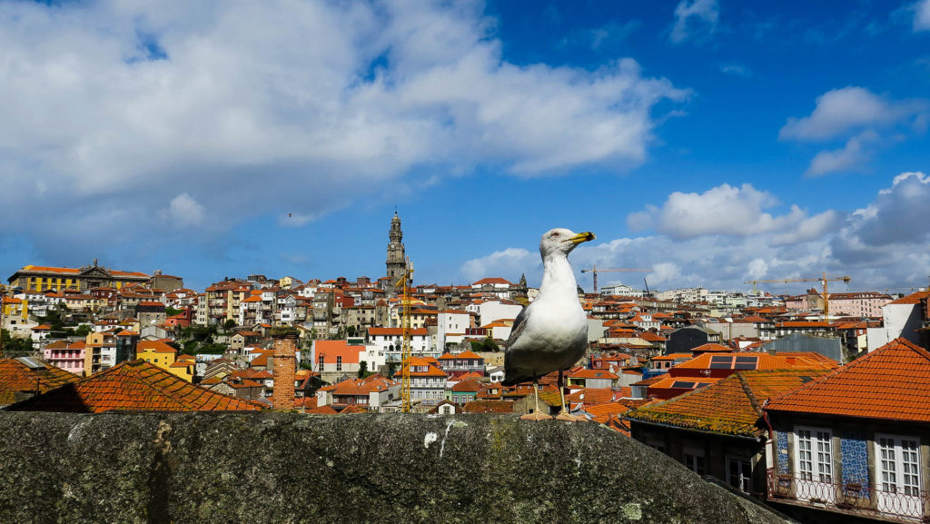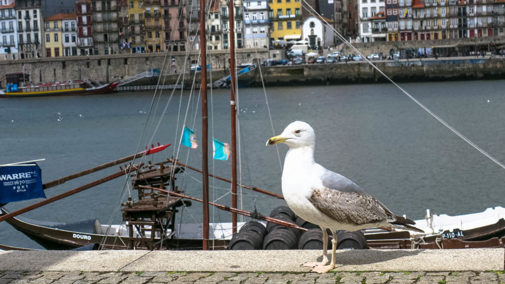A Szabadság-tér érintésével a halpiac, a katedrális, a Douro folyó és az I. Lajos-híd-at (Ponte de Dom Luis I.) felé vettük az irányt. A halpiac (Mercado de S. Sebastiao) ugyan még éppen nyitva volt, de nagyon kicsi és kínálat sem túl izgalmas. A katedrális szép, érdemes belülről is ellenőrizni, a teraszáról pedig remek kilátás nyílik a háztetőkre, a vasútállomás épületére és vissza a Clerigos toronyra. Ahogy közeledünk a folyóhoz egyre több a sirály is. Kameraérzékenyek, előszeretettel pózolnak a turistáknak.