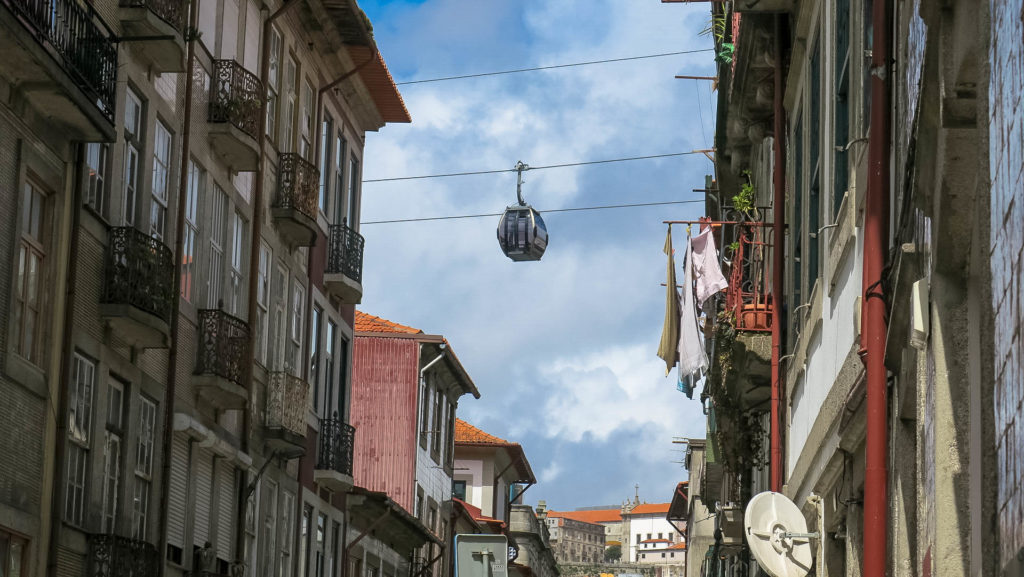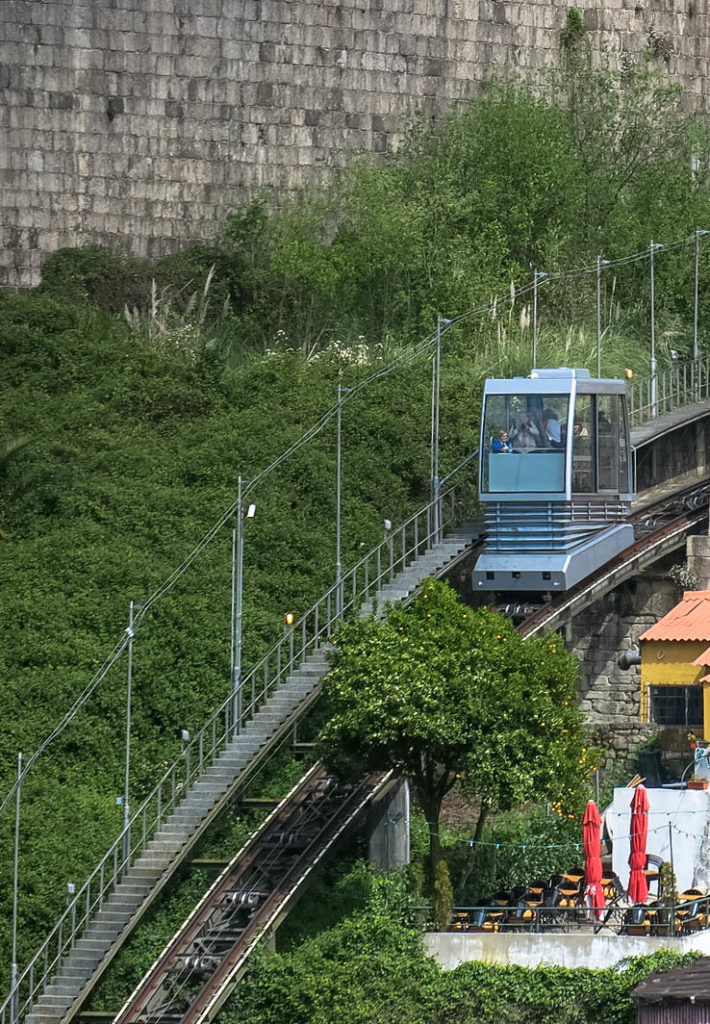 Visszasétálunk az óvárosi oldalra, de ezúttal a híd alsó szintjén keresztezzük a folyót, ahol az autók is járnak. Átérve nincs túl nagy kedvünk 20 emeletnyit felfelé lépcsőzni, de szerencsére már a 19. században találtak erre megoldás, 1891-ben adták át a portói siklót (Guindais Funicular), amely a Ribeira – Batalha közötti szintkülönbséget alig 5 perc alatt gyűri le és mindössze 2,5 jurót kell kicsengetni érte. A sikló érdekessége, hogy egy hidraulikus megoldás folyamatosan vízszintben tartja a kabint, hogy az instabil utasok ne boruljanak, mivel a pálya lejtése folyamatosan változik.