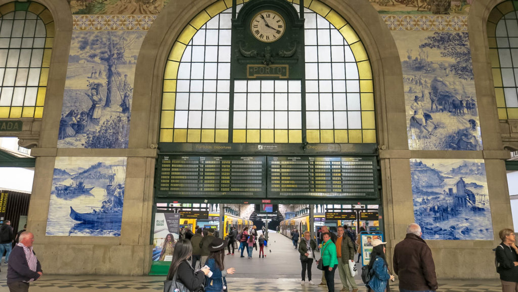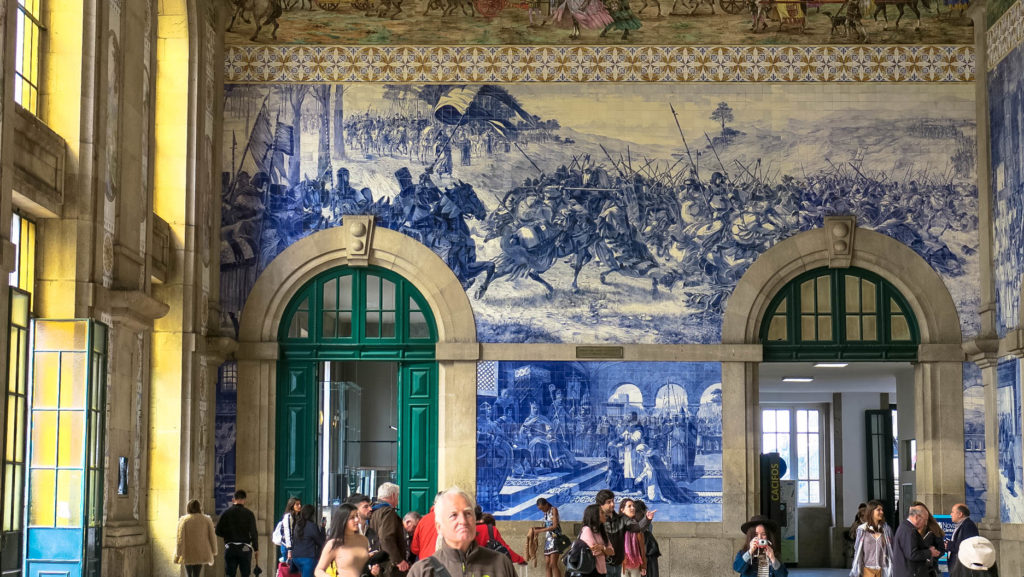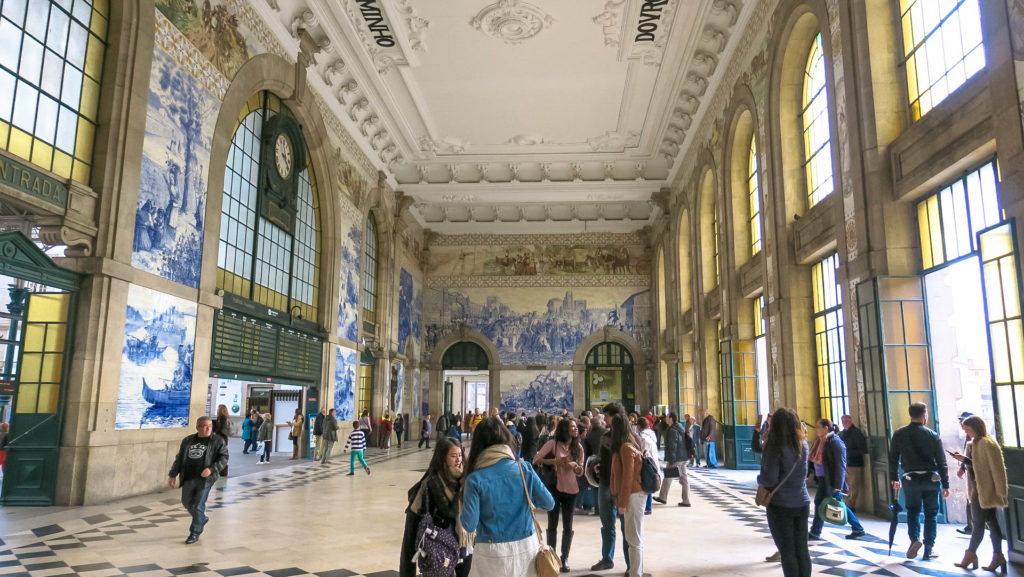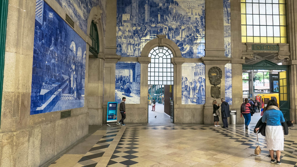 Az 1916-ben átadott és jelenleg is központi pályaduvarként üzemelő vasútállomás (Estacao Ferroviária de Porto-Sao Bento) várócsarnokát – a Lelkek Kápolnájához hasonlóan – fehér-kék azulejos csempék, festmények borítják. Több mint 20.000 csempéből kirakott freskók villantják meg a portugál történelem egy-egy jelentősebb mozzanatát.