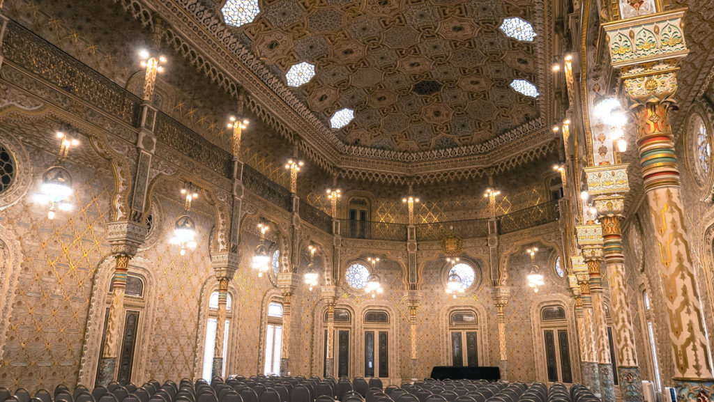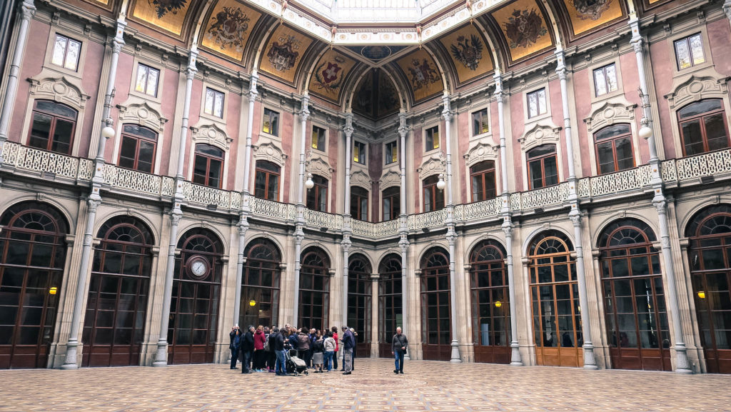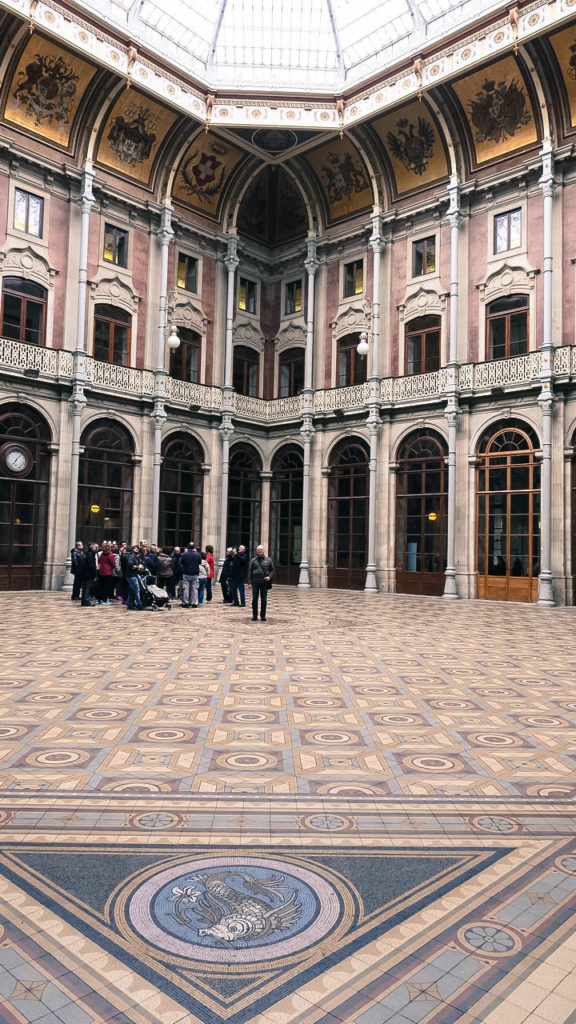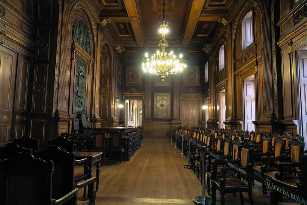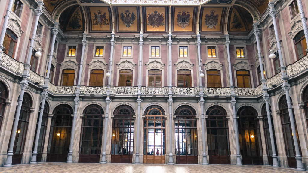 16 óra körül érkezünk Porto egyik fő látványosságához, a Tőzsdepalotához, hamarosan zár, ráadásul önállóan, saját tempóban nem, csak vezetett csoportban látogatható. A 45 perces tour 10 euró. Amúgy remek az időzítés, mivel pont elkezd esni az eső és ez az egyetlen mára tervezett beltéri program, így nem is eshetne jobbkor.