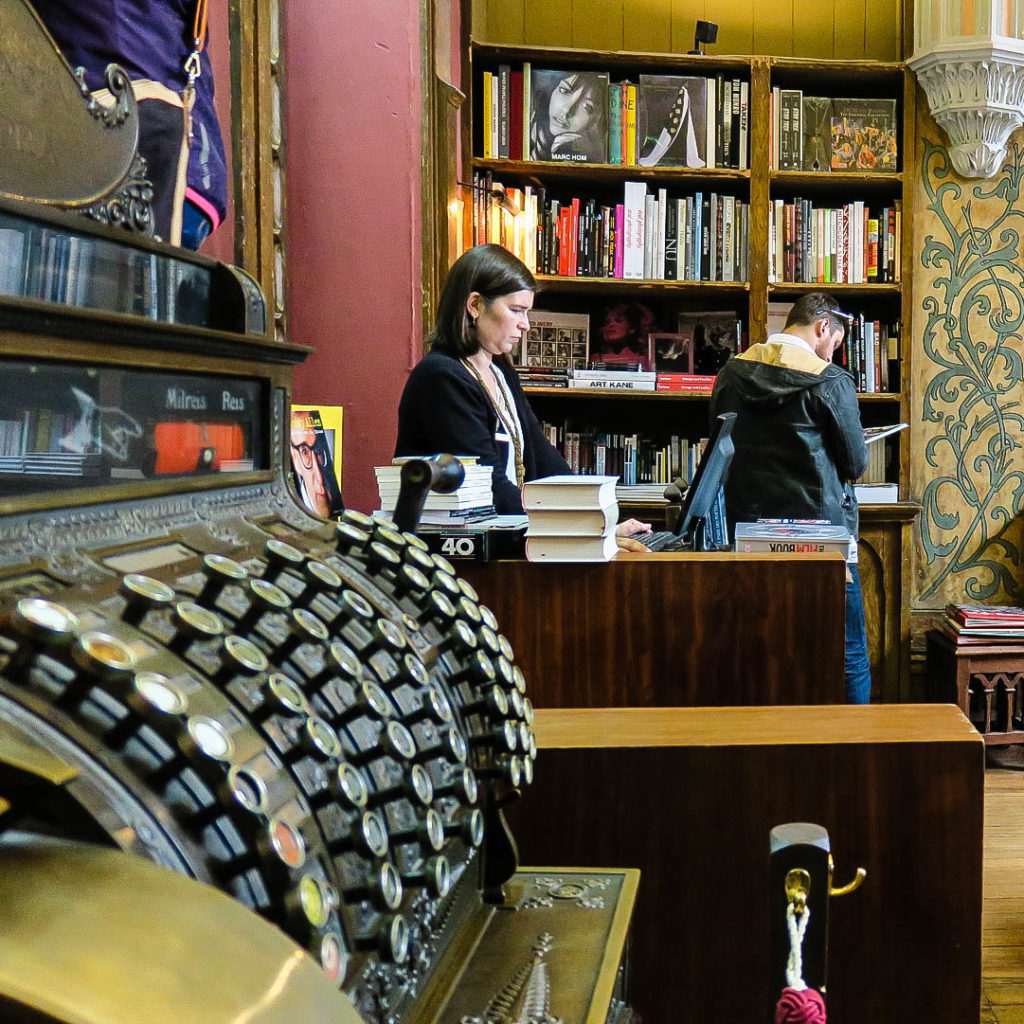 A könyvesbolt egyik érdekessége a Harry Potter lépcsőn és azon kívül, a polcok előtt a padlóban végig futó sínpár és a régi csille-szerű kocsi, amiben a könyveket tolták a helyükre.