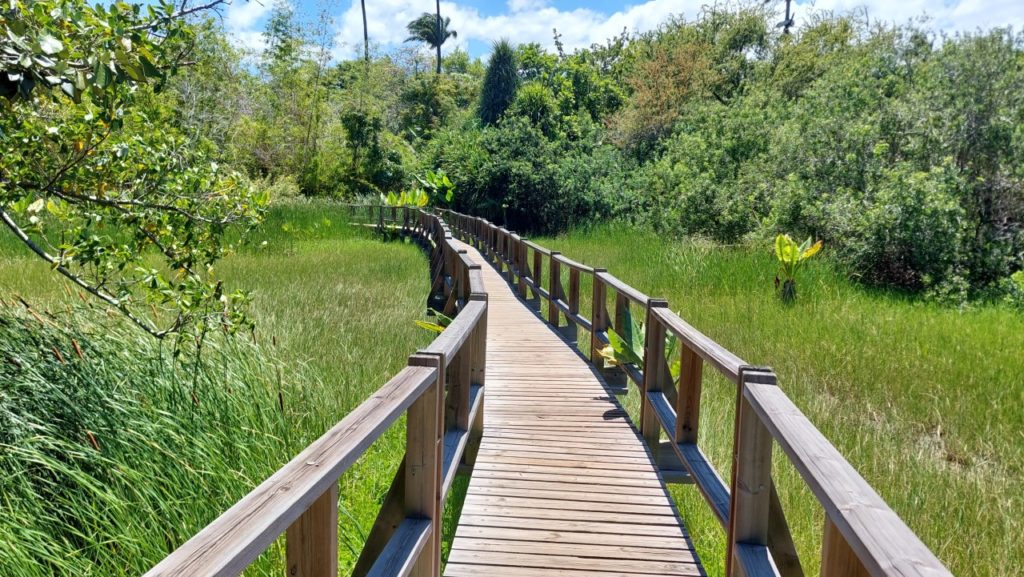 Az állandó sár miatt már az első szakasz is dróthálóval csúszásgátlóssá tett fapallókon indul, majd egy kisebb patakon kell átkelni, aztán jönnek a sárdagasztós lépcsők, egy híd, gyökerek, még több sár. Bemelegítés megvolt. Utána viszont kiérünk egy autószélességű,félig kavicsos, majdnem egyenes útra, amin kb. 1,5 km-t lehet megtenni egészen gyorsan, mielőtt következne az utolsó szakasz, igazi vadregényes dzsungellel, lépcsőkkel, sárral, néhol köveken kapaszkodással, sár felett pallókon, fagyökerekből kialakult természetes alagutak alatt bugdácsolva. A sarat leszámítva nagyon látványos, élvezetes, izgalmas terep. Az odafelé tartó kb. 5 km-t megállás nélkül, viszonylag feszített tempóban (hogy még a felhők előtt odaérjek) kb. 1 óra 15 perc alatt sikerült megtenni.
