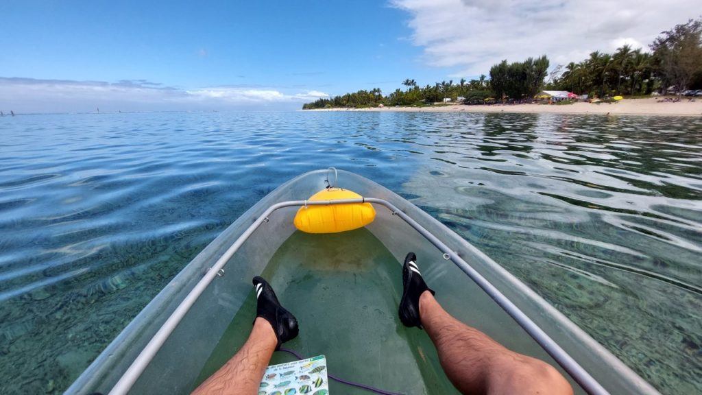 A Saint-Gilles-i lakóhelyemtől mindössze 3 km-re kezdődő Plage de l’Hermitage 7 km hosszú partszakaszával Réunion szigetének egyik legnépszerűbb strandja, türkizkék vize biztonságos és kiváló hely a sznorkelezésre, mivel a korallzátony természetes gátként védi a partot a hullámoktól (illetve a cápáktól). A sekély vízű lagúnában több mint 150 különböző halfaj él, sőt, ha szerencsénk van akár tengeri teknősökkel is találkozhatunk. Snorkelezés mellett a strand végében bérelhető átlátszó plexi kajak a tenger alatti élővilág megismerésének alternatív módja. A kétszemélyes kajak fél órára 20, 1 órára 30 euró. Nekem a sznorkelezés jobban bejött, mivel a kajak hiába átlátszó, a karcok, illetve a hajótestben lévő víz megtörik a fényt, így nem nyújtotta azt az élményt, mint amire számítottam.