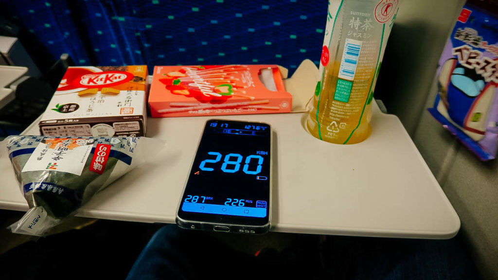 A teljes 600 km-es utazás 3 óra 20 perc, viszont a vonatjegyet repülőjegy árban mérik, egy felnőttnek, egy irányba: Y18.700 (kb. 45.000 Ft !!!), de egy japán utazásból nem maradhat ki, muszáj volt kipróbálni.