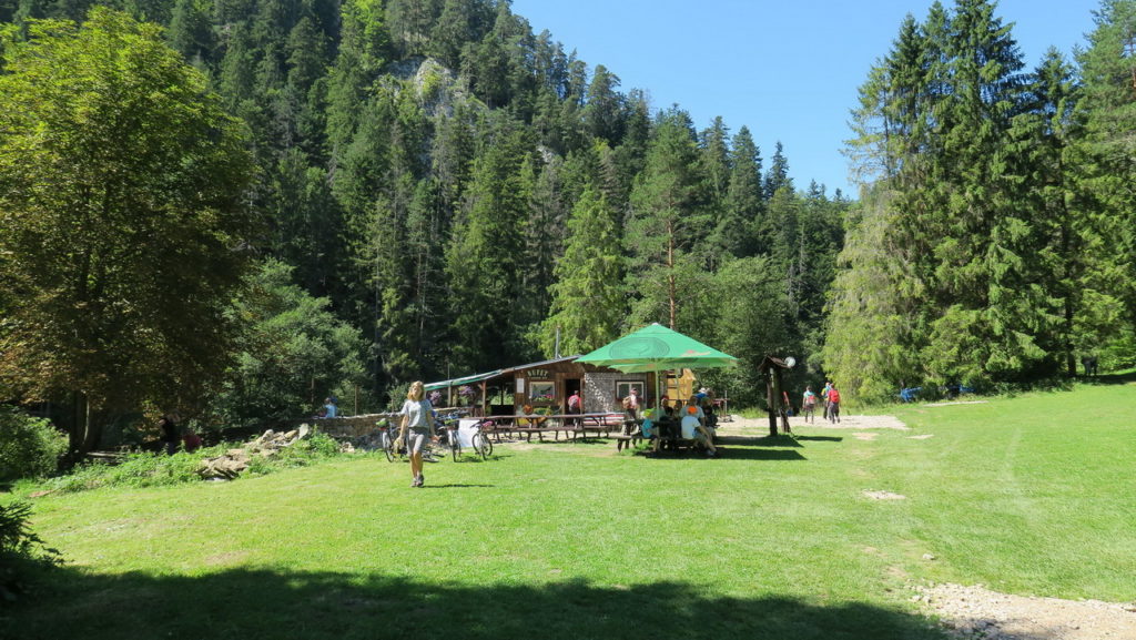 Az utolsó pár száz méterre a természet azért beszúrt egy különösen meredek gyökerekkel nehezített szakaszt, hogy a maradék energiát is kicsavarja a túrázóból, mielőtt megérkezünk a kolostor romjaihoz illetve a fennsíkon található hatalmas tisztásra, menedékházhoz, büféhez, wc-khez. Az itteni büfében már meleg kaja is kapható, igaz csak a sört teszteltük.