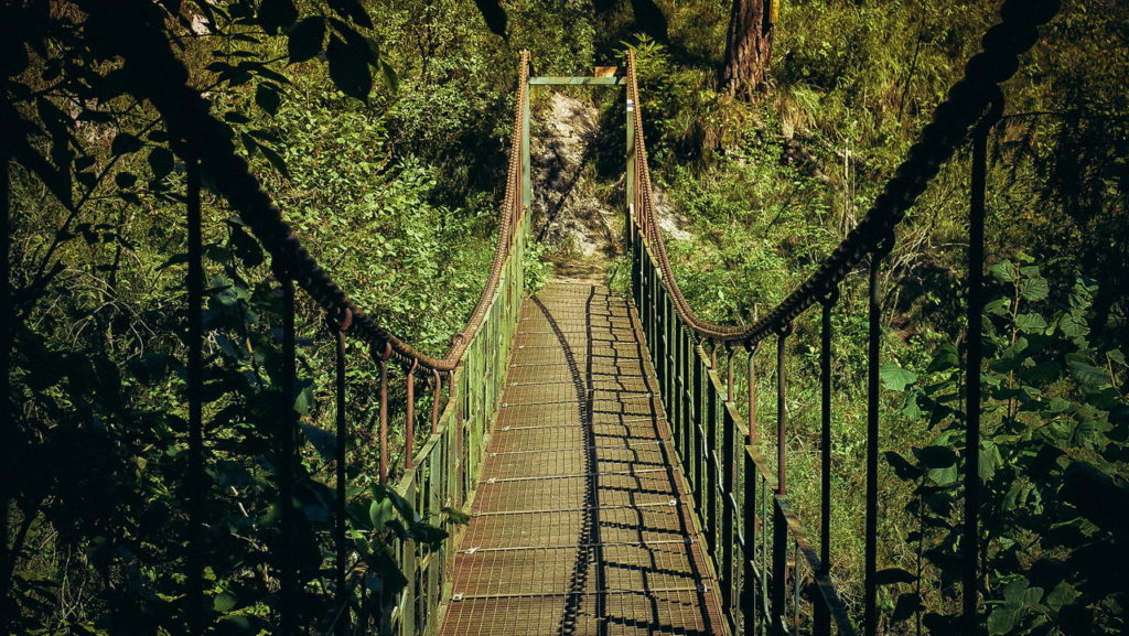A kék jelzésen folytatjuk utunkat a Hernád völgyében. Először egészen magasan, majd egyre lejjebb vízközelben. Átkelünk két himbálódzó függőhídon (ezeken egyszerre maximum 5 ember tartózkodhat), jönnek a jól ismert fémtálcák, falépcsők, láncos kapaszkodók, sok szikla és gyökér miatt is nehezen lehet haladni. kb. 1 órás “bemelegítő” szakasz után érjük el a Kolostor-szakadék alját.